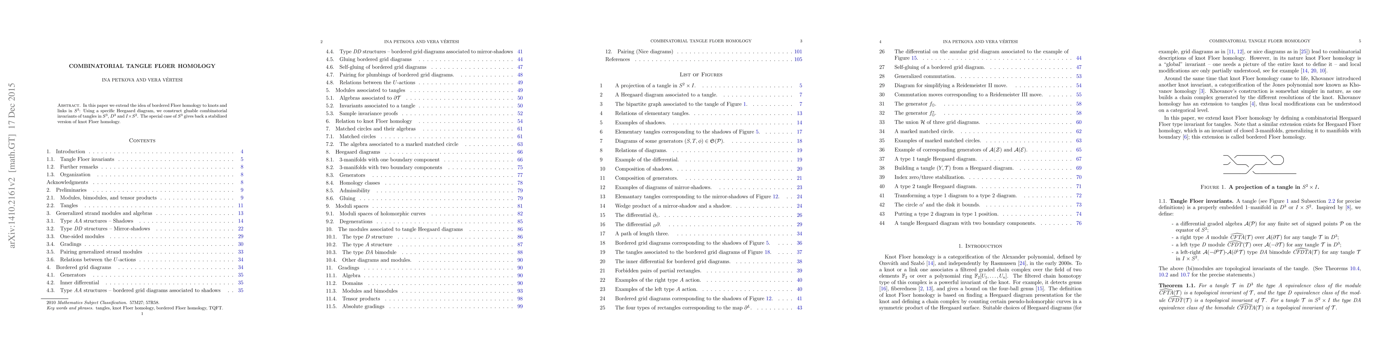 In this paper we extend the idea of bordered Floer homology to knots and links in $S^3$: Using a specific Heegaard diagram, we construct gluable combinatorial invariants of tangles in $S^3$, $D^3$ and $I\times S^2$. The special case of $S^3$ gives back a stabilized version of knot Floer homology.