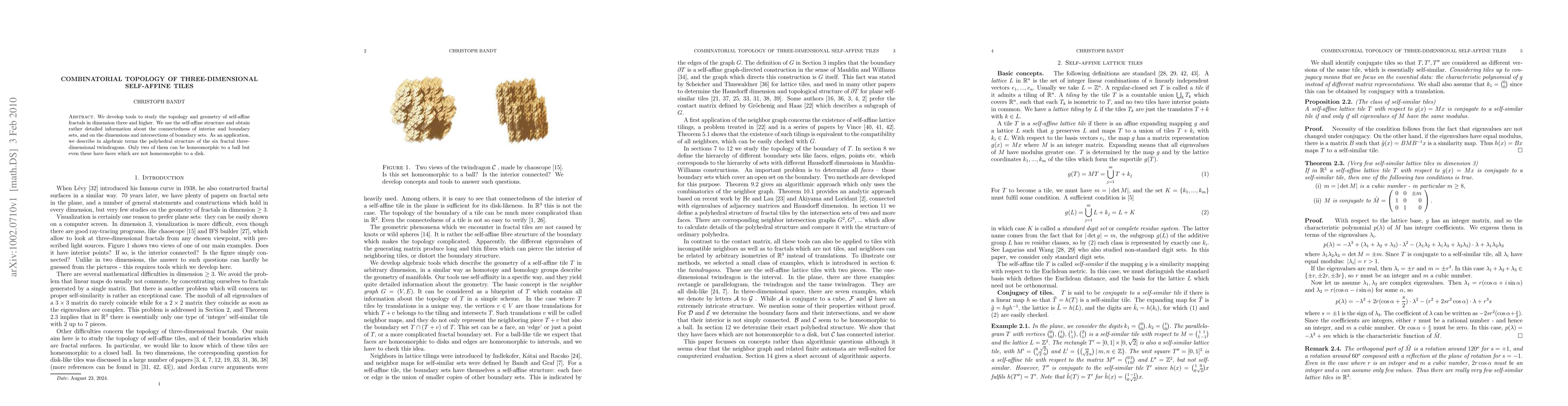 This paper develops tools to analyze the topology and geometry of three-dimensional self-affine fractals, focusing on the connectedness of interior and boundary sets, and their dimensional intersections. It specifically describes the polyhedral structure of six fractal three-dimensional twindragons, revealing that only two can be homeomorphic to a ball, though their faces differ from disks.