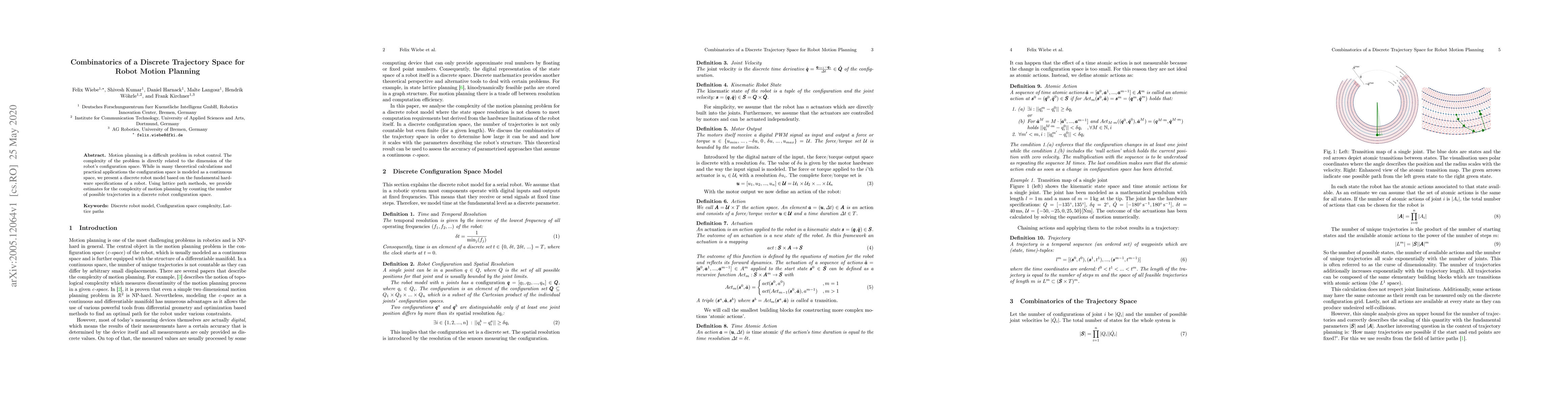 This paper proposes a discrete robot model based on hardware specifications and uses lattice path methods to estimate the complexity of motion planning by counting possible trajectories in a discrete configuration space. The approach aims to provide a more realistic model for practical robot motion planning.