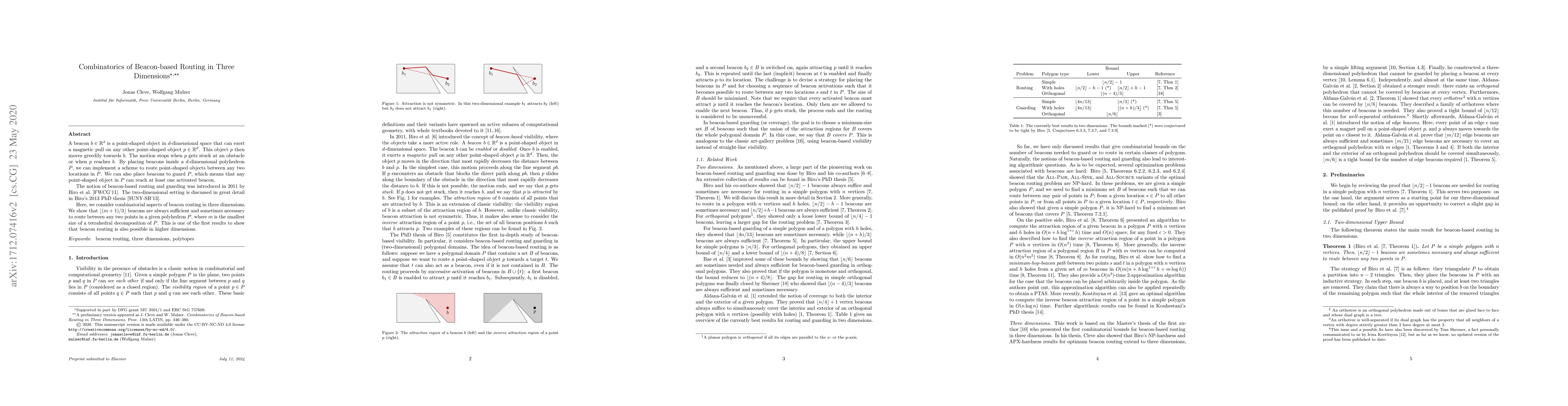 This paper extends the concept of beacon-based routing from two dimensions to three dimensions within polyhedra, demonstrating that $\lfloor\frac{m+1}{3}\rfloor$ beacons are sufficient for routing between any pair of points, where $m$ is the number of tetrahedra in a tetrahedral decomposition of the polyhedron. This is a significant advancement showing that beacon-based routing is feasible in three-dimensional spaces.