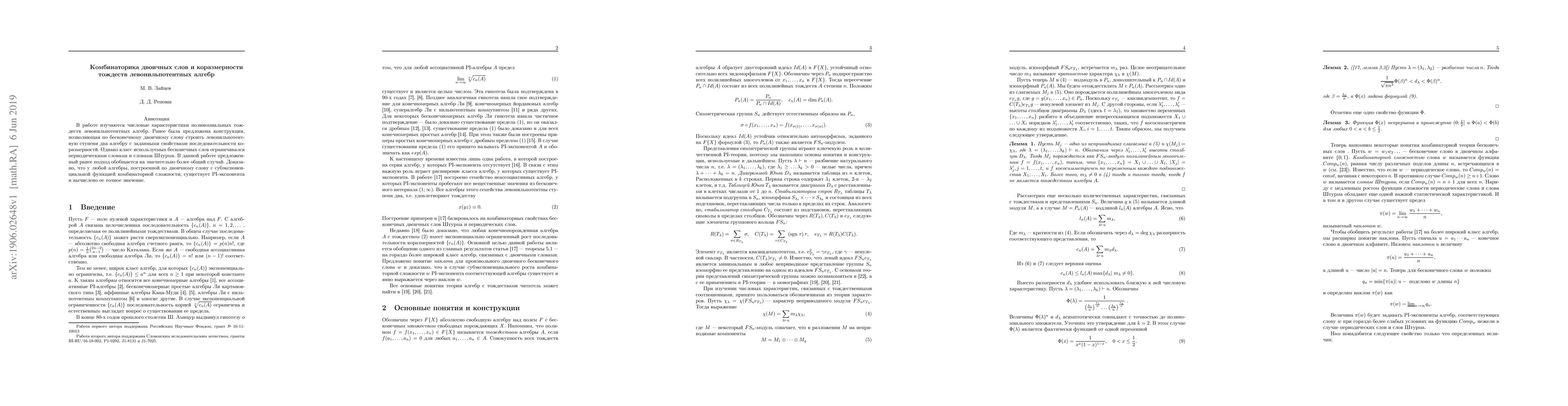 Numerical characteristics of polynomial identities of left nilpotent algebras are examined. Previously, we came up with a construction which, given an infinite binary word, allowed us to build a two-step left nilpotent algebra with specified properties of the codimension sequence. However, the class of the infinite words used was confined to periodic words and Sturm words. Here the previously proposed approach is generalized to a considerably more general case. It is proved that for any algebra constructed given a binary word with subexponential function of combinatorial complexity, there exists a PI-exponent, and its precise value is computed.
