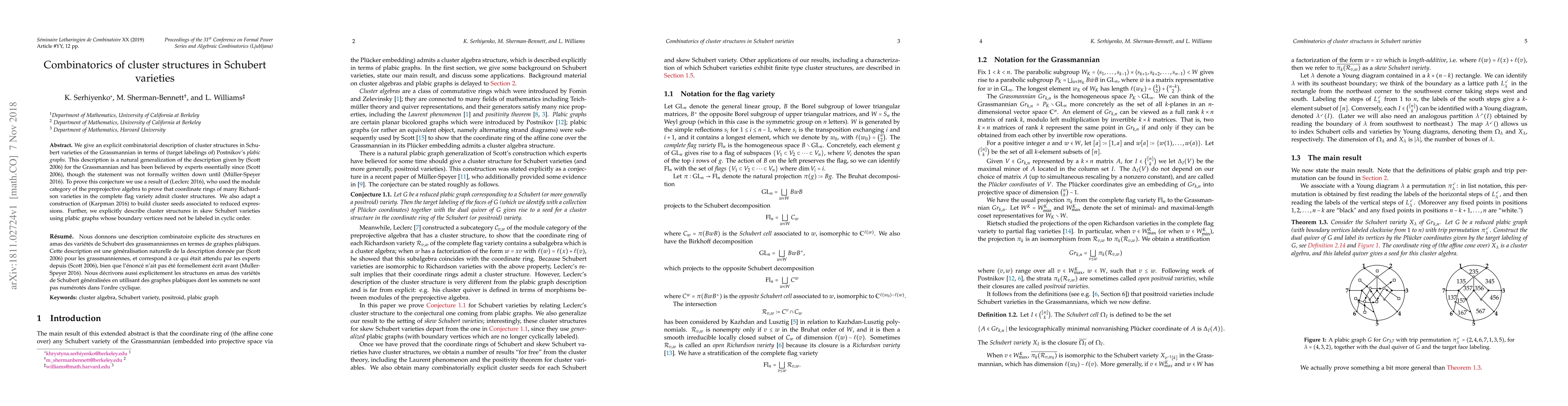 Researchers describe a combinatorial method to study cluster structures in Schubert varieties of the Grassmannian using Postnikov's plabic graphs. This work generalizes previous findings and provides new insights into the complete flag variety.