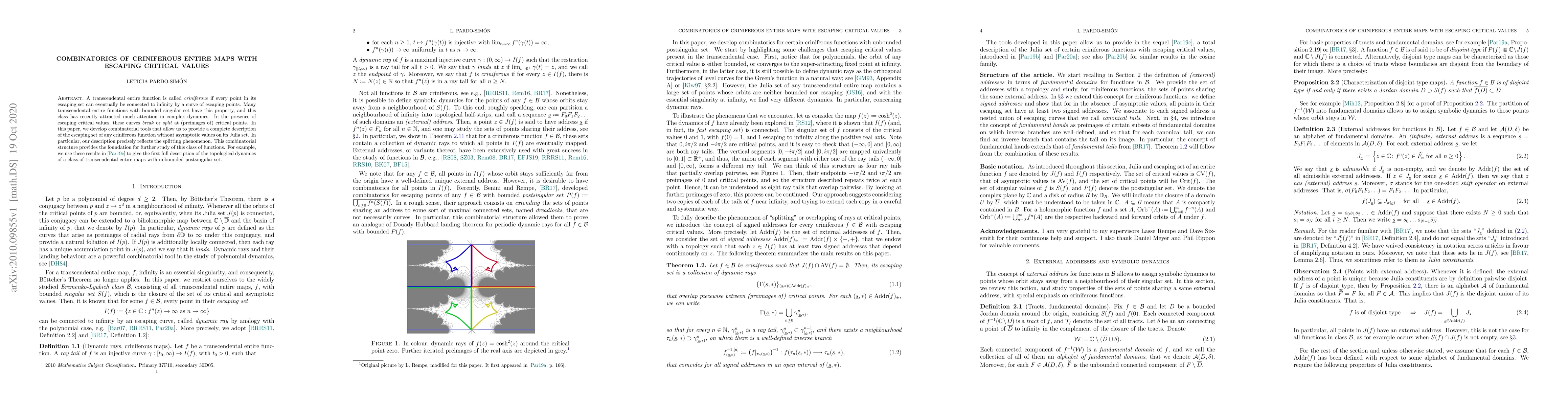 This paper develops combinatorial tools to describe the escaping set of criniferous entire functions, focusing on the behavior of curves of escaping points in the presence of escaping critical values. The results provide a detailed framework for understanding the topological dynamics of these functions.