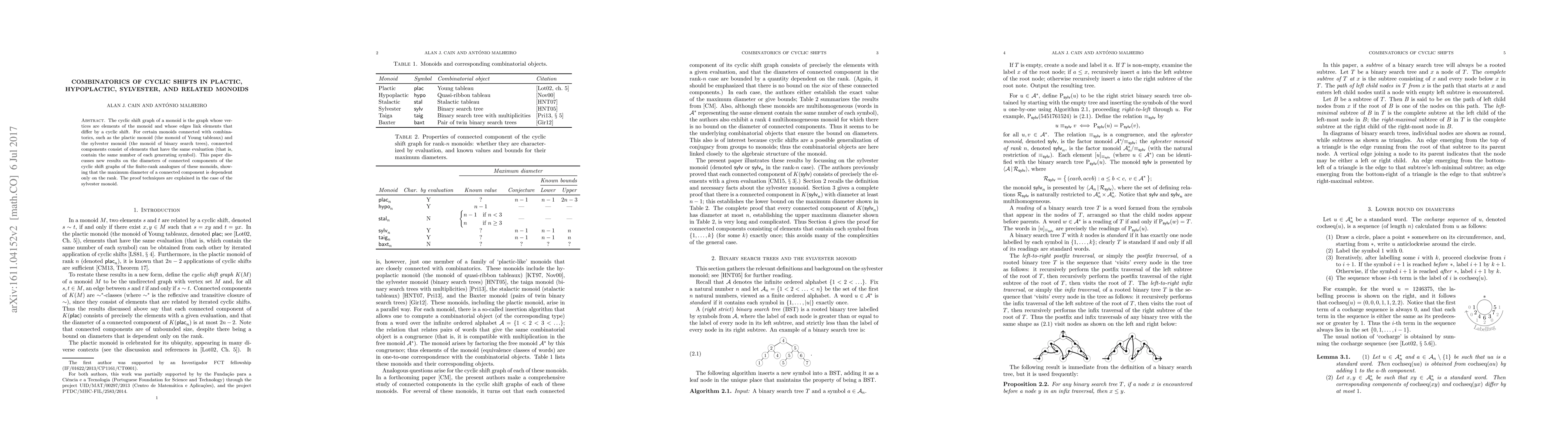This paper explores the cyclic shift graphs of plactic, hypoplactic, sylvester monoids, and related structures, revealing that connected components' maximum diameters depend solely on the rank. Proof techniques, particularly for the sylvester monoid, are thoroughly detailed.