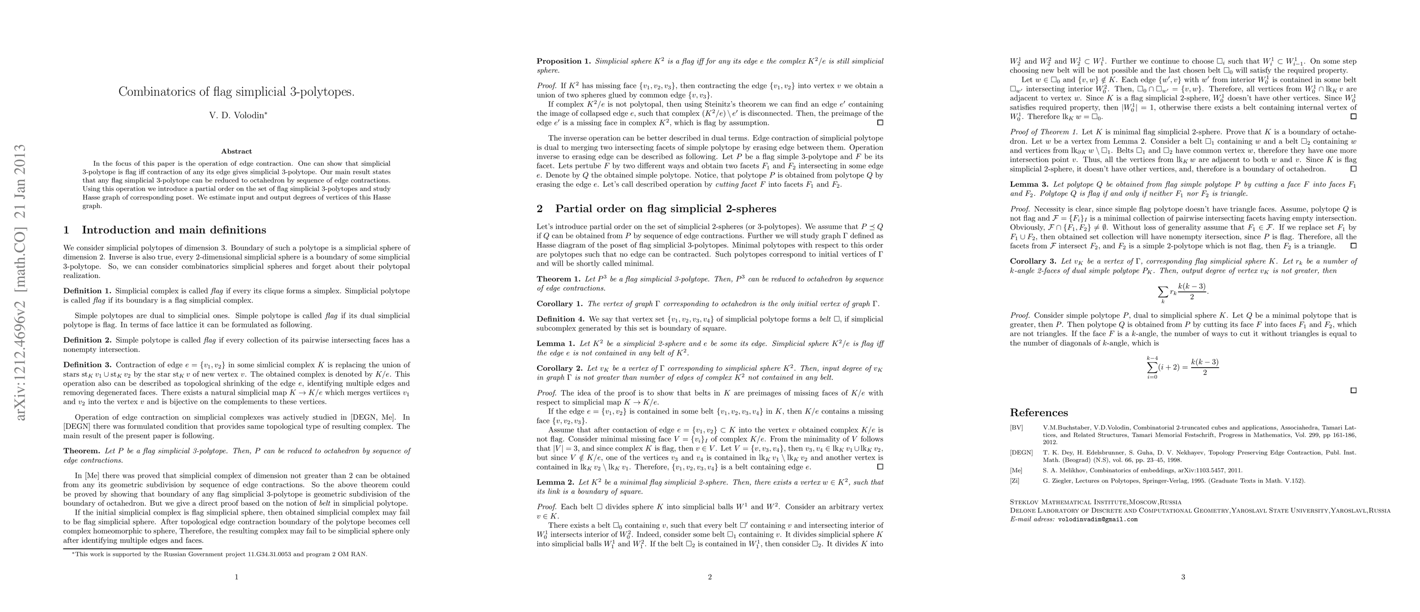 This paper investigates the combinatorics of flag simplicial 3-polytopes, proving that any such polytope can be reduced to an octahedron via a sequence of edge contractions. It introduces a partial order on the set of these polytopes and analyzes the Hasse graph of the resulting poset, estimating the input and output degrees of its vertices.