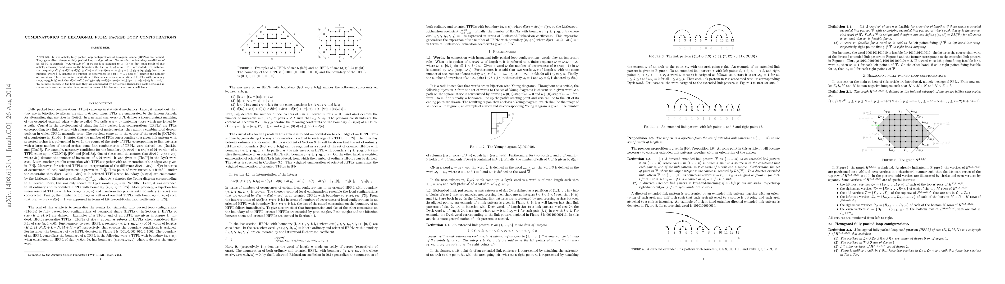 This paper defines and studies hexagonal fully packed loop configurations (HFPLs), which generalize triangular fully packed loop configurations. It provides necessary boundary conditions and enumerates HFPLs based on specific inversion and occurrence conditions, using Littlewood-Richardson coefficients for the enumeration.