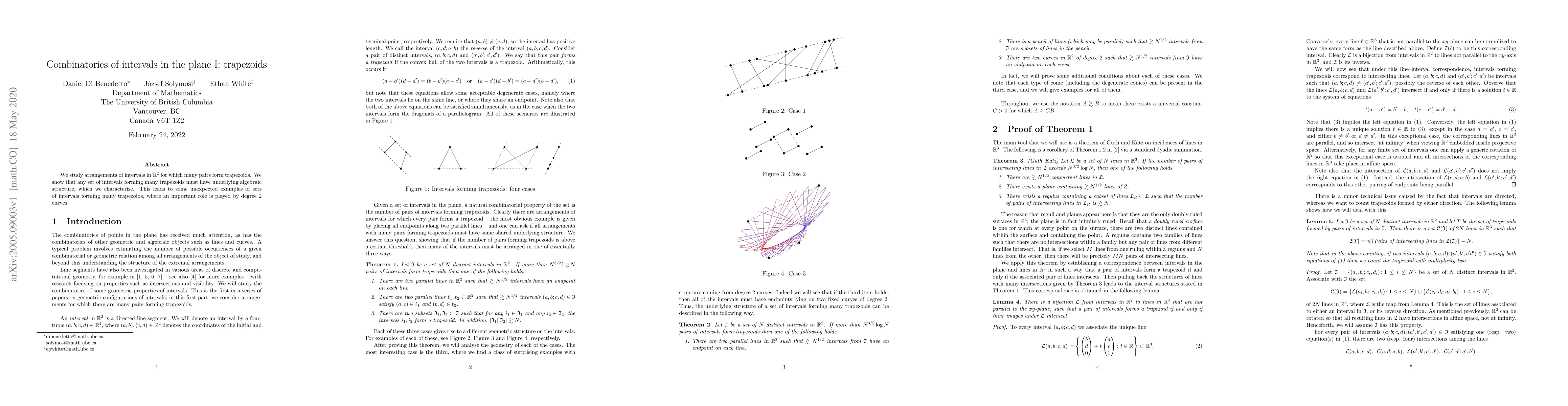 We study arrangements of intervals in $\mathbb{R}^2$ for which many pairs form trapezoids. We show that any set of intervals forming many trapezoids must have underlying algebraic structure, which we characterise. This leads to some unexpected examples of sets of intervals forming many trapezoids, where an important role is played by degree 2 curves.