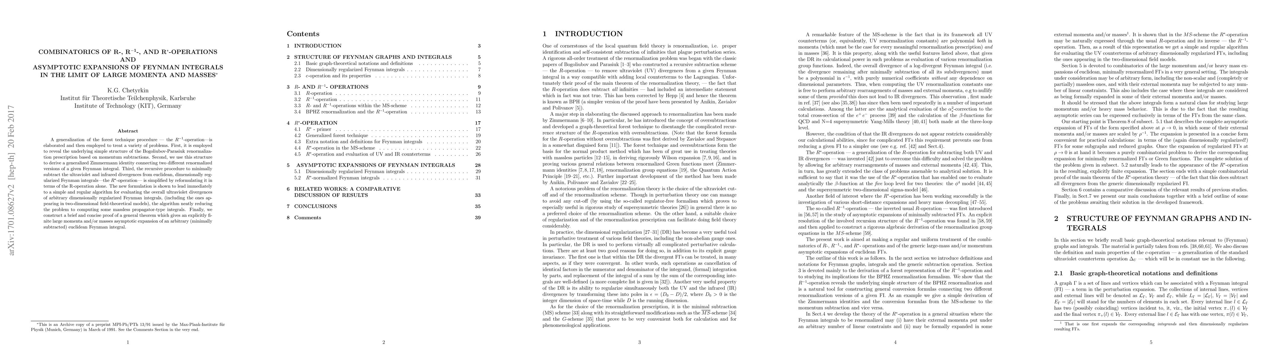 A generalization of the forest technique procedure --- the $R^{-1}$-operation---is elaborated and then employed to treat a variety of problems. First, it is employed to reveal the underlying simple structure of the Bogoliubov-Parasiuk renormalization prescription based on momentum subtractions. Second, we use this structure to derive a generalized Zimmermann identity connecting two different renormalized versions of a given Feynman integral. Third, the recursive procedure to minimally subtract the ultraviolet and infrared divergences from euclidean, dimensionally regularized Feynman integrals---the $R^*$-operation--- is simplified by reformulating it in terms of the R-operation alone. The new formulation is shown to lead immediately to a simple and regular algorithm for evaluating the overall ultraviolet divergences of arbitrary dimensionally regularized Feynman integrals, (including the ones appearing in two-dimensional field-theoretical models), the algorithm neatly reducing the problem to computing some massless propagator-type integrals. Finally, we construct a brief and concise proof of a general theorem which gives an explicitly finite large momenta and/or masses asymptotic expansion of an arbitrary (minimally subtracted) euclidean Feynman integral.