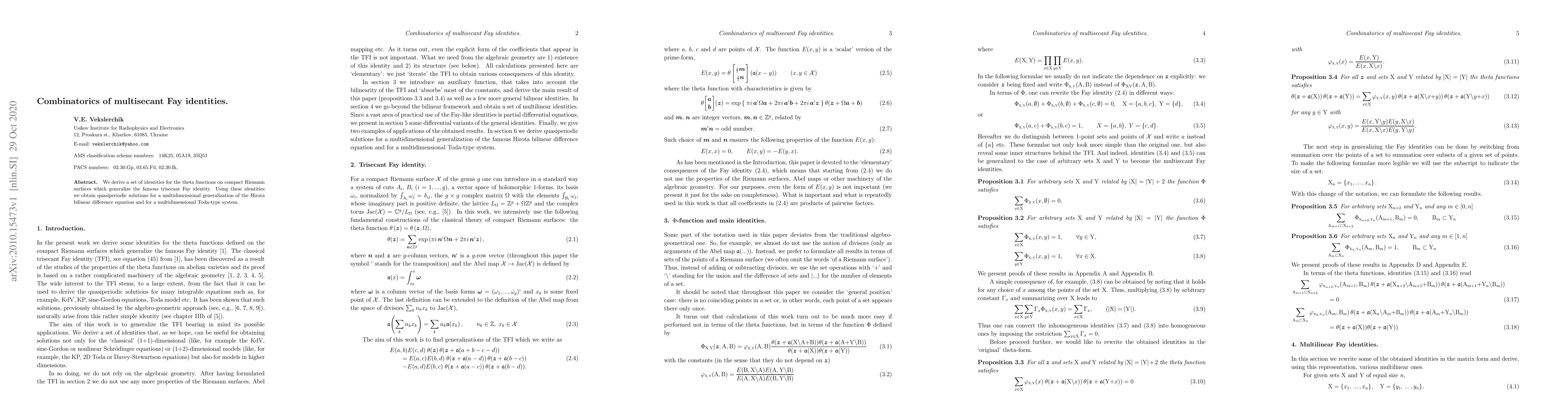 The research extends the original Fay trisecant identity to multisecant cases, deriving new multilinear Fay identities and providing quasiperiodic solutions for multidimensional integrable models, all without relying on additional algebraic geometry facts.