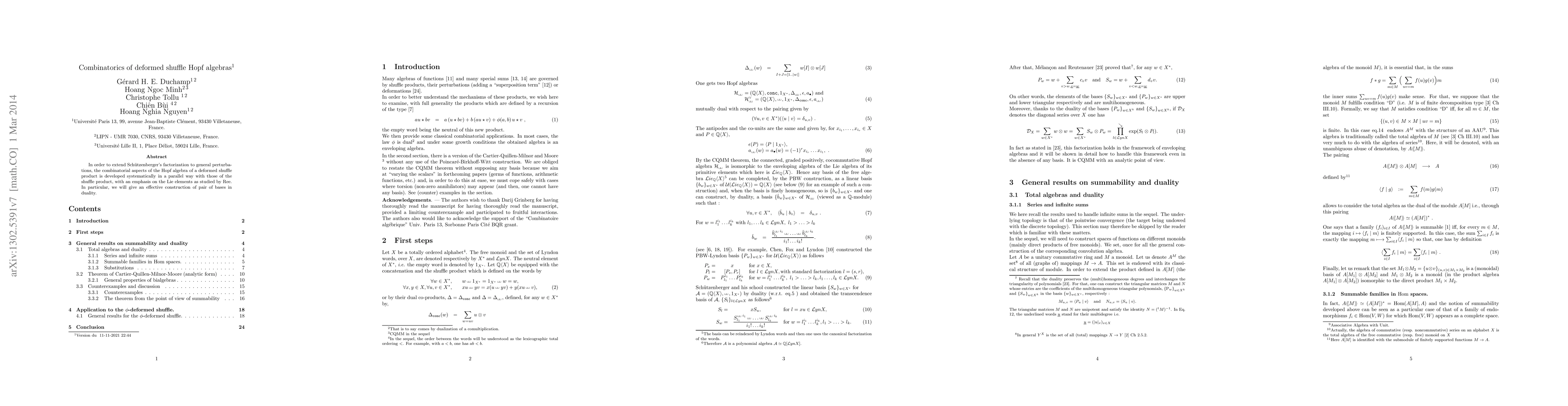 In order to extend the Sch\"utzenberger's factorization to general perturbations, the combinatorial aspects of the Hopf algebra of the $\phi$-deformed stuffle product is developed systematically in a parallel way with those of the shuffle product.