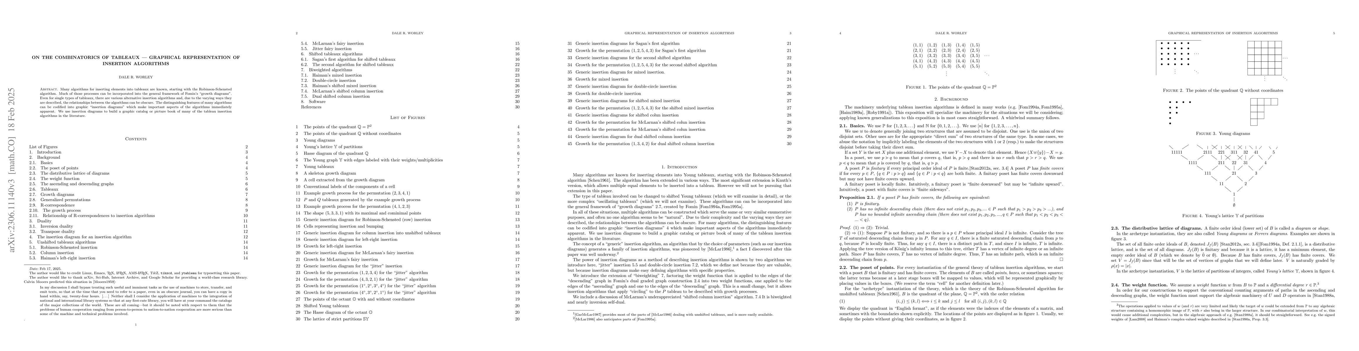 This paper presents a graphical representation of various tableau insertion algorithms using "insertion diagrams" to clarify and categorize them, focusing on the Robinson-Schensted algorithm and Fomin's growth diagrams. The diagrams aim to elucidate relationships between different algorithms and provide a visual catalog of these processes.