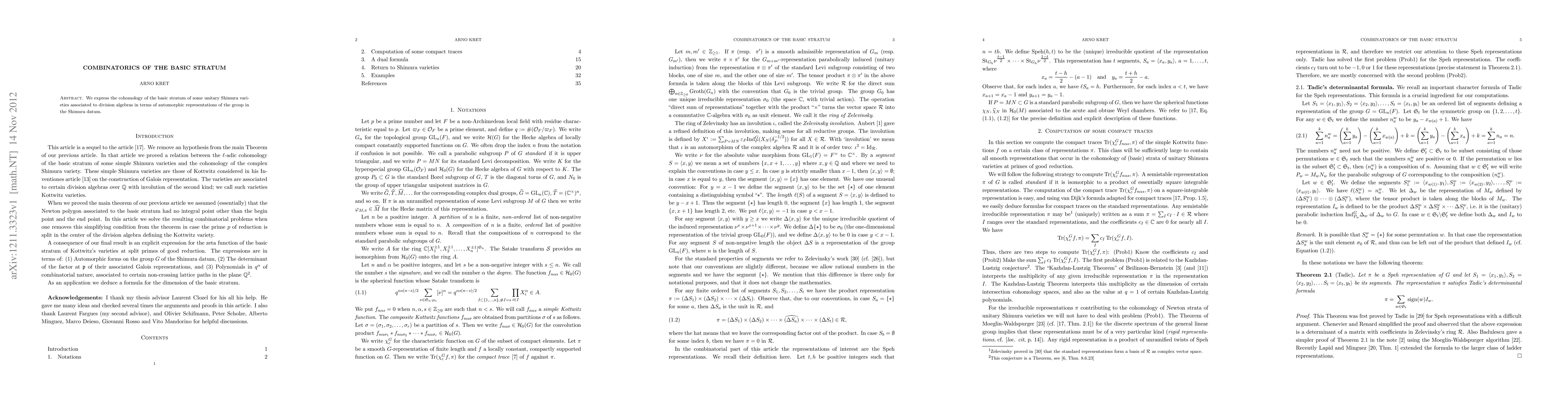 We express the cohomology of the basic stratum of some unitary Shimura varieties associated to division algebras in terms of automorphic representations of the group in the Shimura datum.