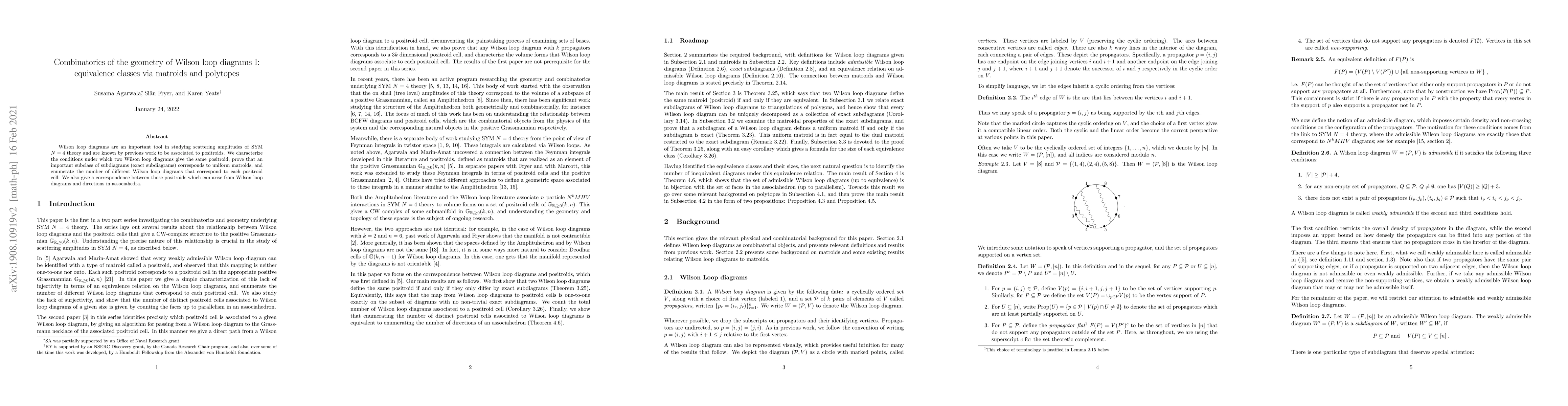 This paper explores the combinatorial equivalence of Wilson loop diagrams in $N=4$ SYM theory, showing they correspond to positroids. It establishes a connection between exact subdiagrams and uniform matroids, and enumerates the number of distinct diagrams per positroid, linking these to directions in associahedra.