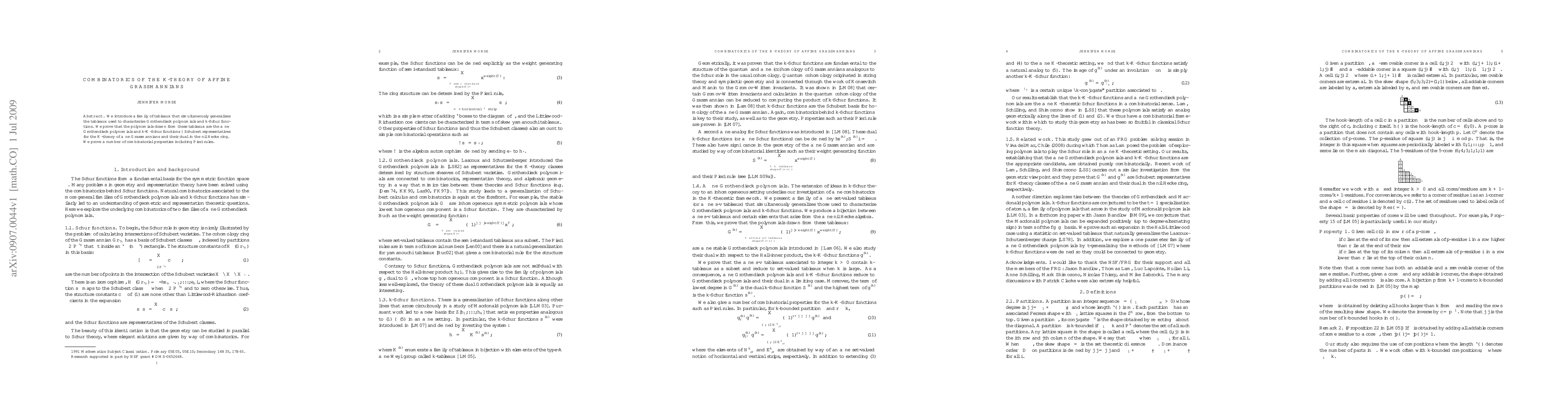 This paper introduces generalized tableaux to characterize affine Grothendieck polynomials and k-K-Schur functions, proving their combinatorial properties including Pieri rules for the K-theory of affine Grassmannians. The focus is on the combinatorial framework underlying these new polynomials.