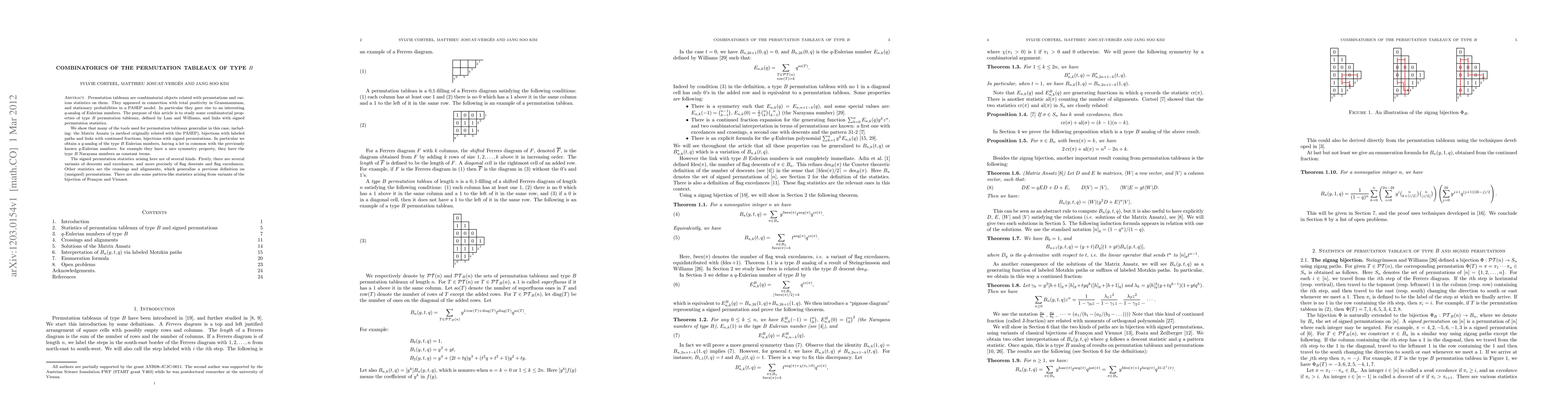 This paper explores combinatorial properties of type B permutation tableaux, demonstrating generalizations of tools used for standard permutation tableaux, including the Matrix Ansatz and bijections with labeled paths. It introduces a q-analog of type B Eulerian numbers and various signed permutation statistics, such as flag descents, flag excedances, crossings, and alignments.