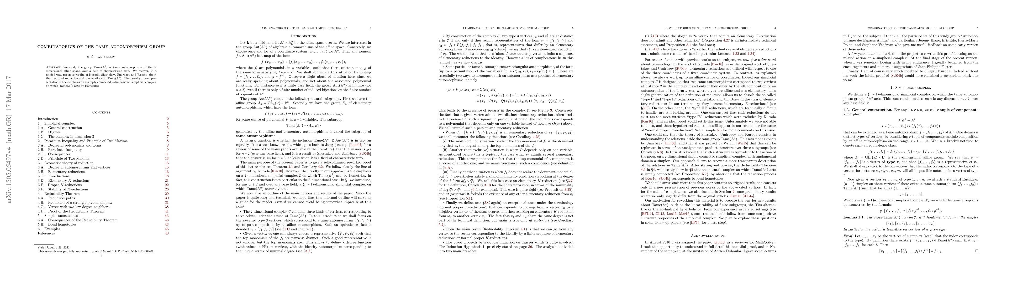 This paper studies the group Tame($\mathbf A^3$) of tame automorphisms of 3-dimensional affine space over a field of characteristic zero, presenting a unified approach to previous results. It highlights a simply connected 2-dimensional simplicial complex on which Tame($\mathbf A^3$) acts by isometries.
