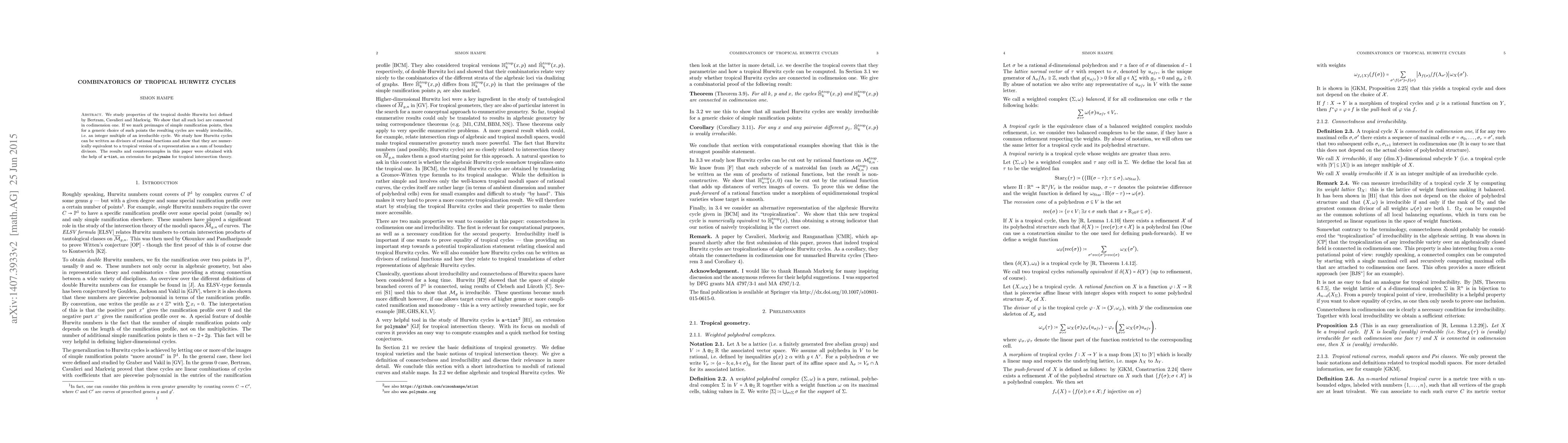 We study properties of the tropical double Hurwitz loci defined by Bertram, Cavalieri and Markwig. We show that all such loci are connected in codimension one. If we mark preimages of simple ramification points, then for a generic choice of such points the resulting cycles are weakly irreducible, i.e. an integer multiple of an irreducible cycle. We study how Hurwitz cycles can be written as divisors of rational functions and show that they are numerically equivalent to a tropical version of a representation as a sum of boundary divisors. The results and counterexamples in this paper were obtained with the help of a-tint, an extension for polymake for tropical intersection theory.