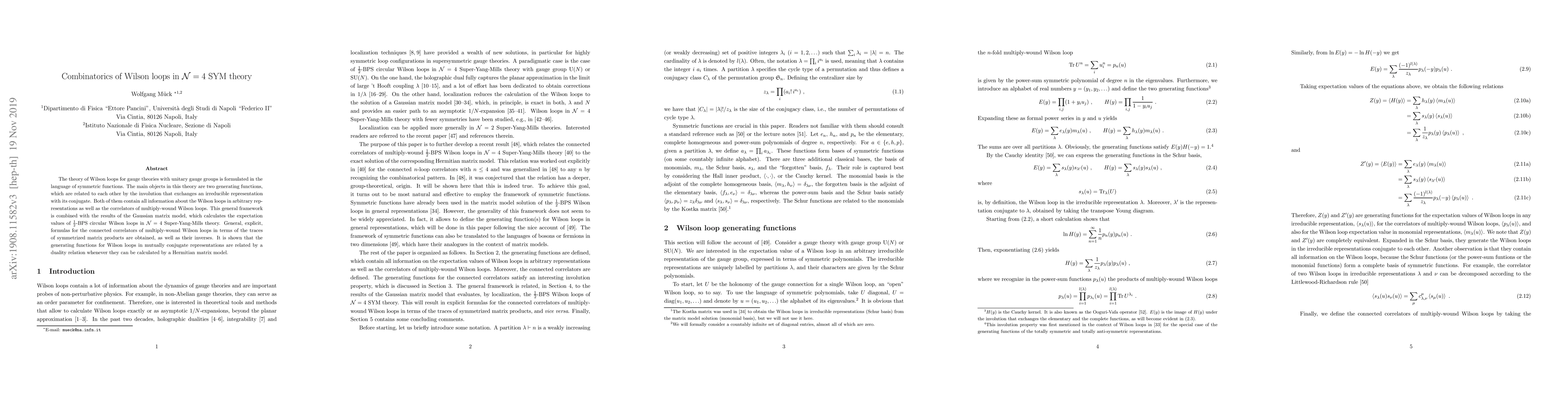 This paper formulates Wilson loops in $\mathcal{N}=4$ SYM theory using symmetric functions and derives explicit formulas for connected correlators of multiply-wound Wilson loops, revealing a duality relation between generating functions for conjugate representations linked by a Hermitian matrix model.