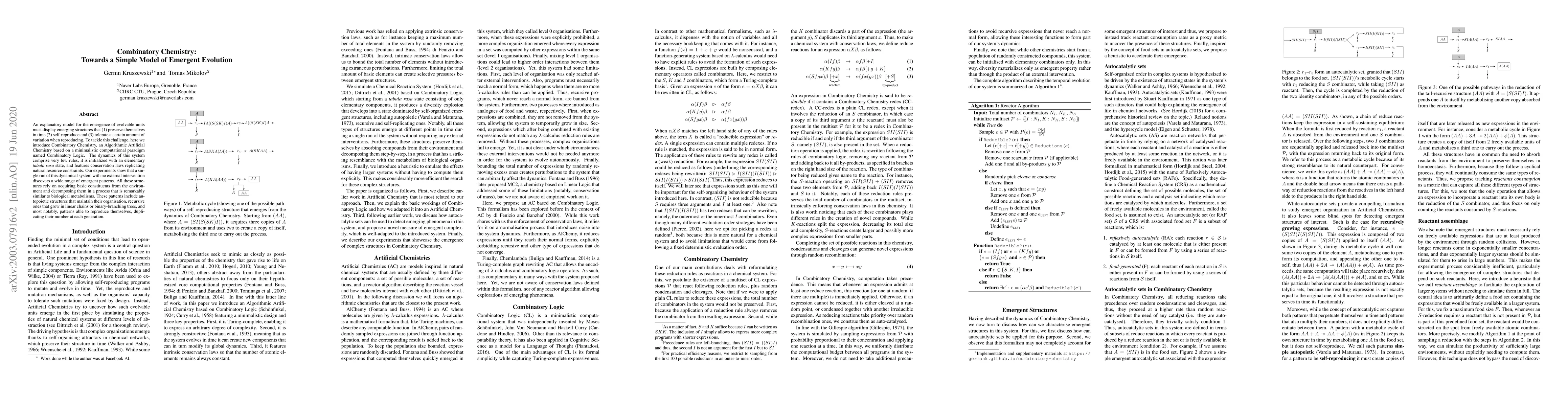 This paper introduces Combinatory Chemistry, an algorithmic artificial chemistry model based on Combinatory Logic, to explain the emergence of evolvable units. It demonstrates that the system can discover a variety of self-reproducing and autopoietic emergent patterns through a minimalistic computational paradigm.