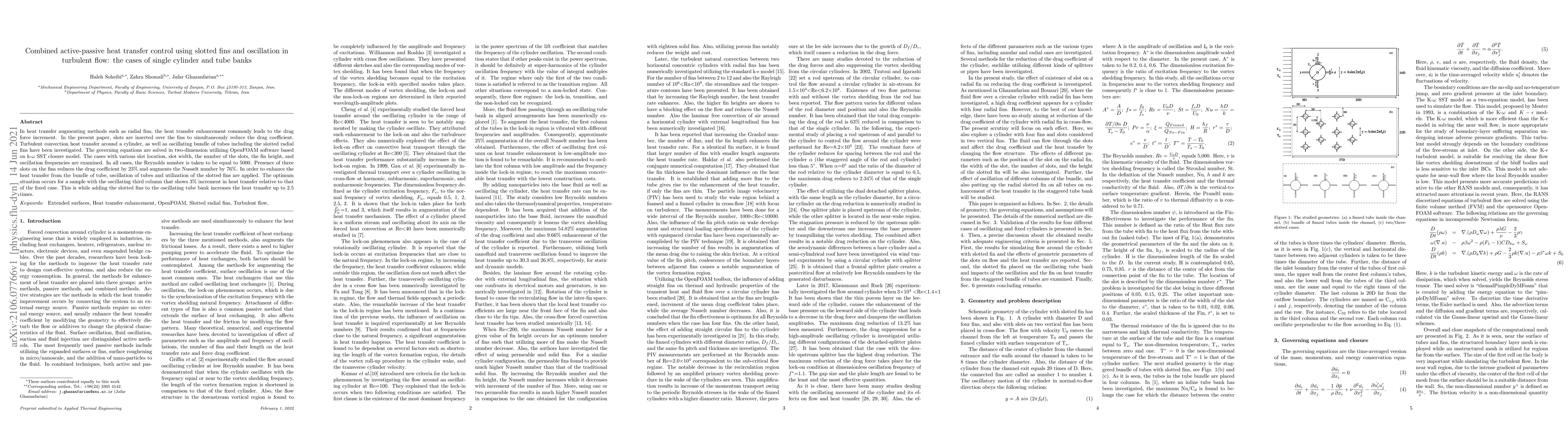 This paper investigates the combined use of slotted fins and oscillation to enhance heat transfer in turbulent flow around a single cylinder and tube banks, while simultaneously reducing drag. Computational simulations using OpenFOAM show that slotted fins can reduce drag by 23% and increase Nusselt number by 76%, with optimal configurations achieving up to 2.5 times the heat transfer of a fixed tube bank.