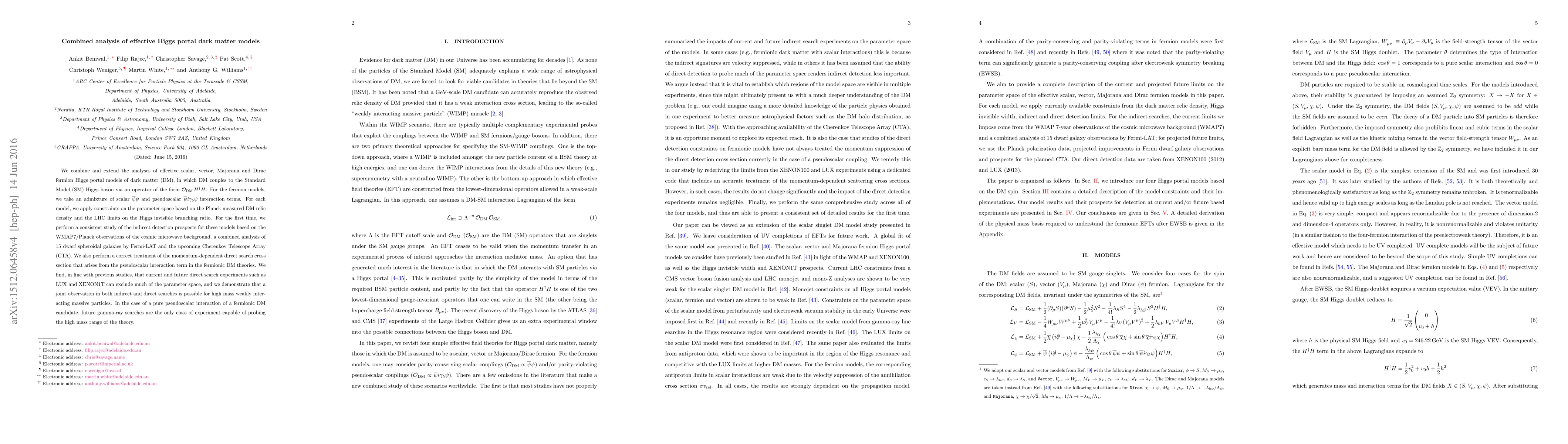 We combine and extend the analyses of effective scalar, vector, Majorana and Dirac fermion Higgs portal models of dark matter (DM), in which DM couples to the Standard Model (SM) Higgs boson via an operator of the form $\mathcal{O}_{\textrm{DM}}\, H^\dagger H$. For the fermion models, we take an admixture of scalar $\overline{\psi} \psi$ and pseudoscalar $\overline{\psi} i\gamma_5 \psi$ interaction terms. For each model, we apply constraints on the parameter space based on the Planck measured DM relic density and the LHC limits on the Higgs invisible branching ratio. For the first time, we perform a consistent study of the indirect detection prospects for these models based on the WMAP7/Planck observations of the cosmic microwave background, a combined analysis of 15 dwarf spheroidal galaxies by Fermi-LAT and the upcoming Cherenkov Telescope Array (CTA). We also perform a correct treatment of the momentum-dependent direct search cross section that arises from the pseudoscalar interaction term in the fermionic DM theories. We find, in line with previous studies, that current and future direct search experiments such as LUX and XENON1T can exclude much of the parameter space, and we demonstrate that a joint observation in both indirect and direct searches is possible for high mass weakly interacting massive particles. In the case of a pure pseudoscalar interaction of a fermionic DM candidate, future gamma-ray searches are the only class of experiment capable of probing the high mass range of the theory.