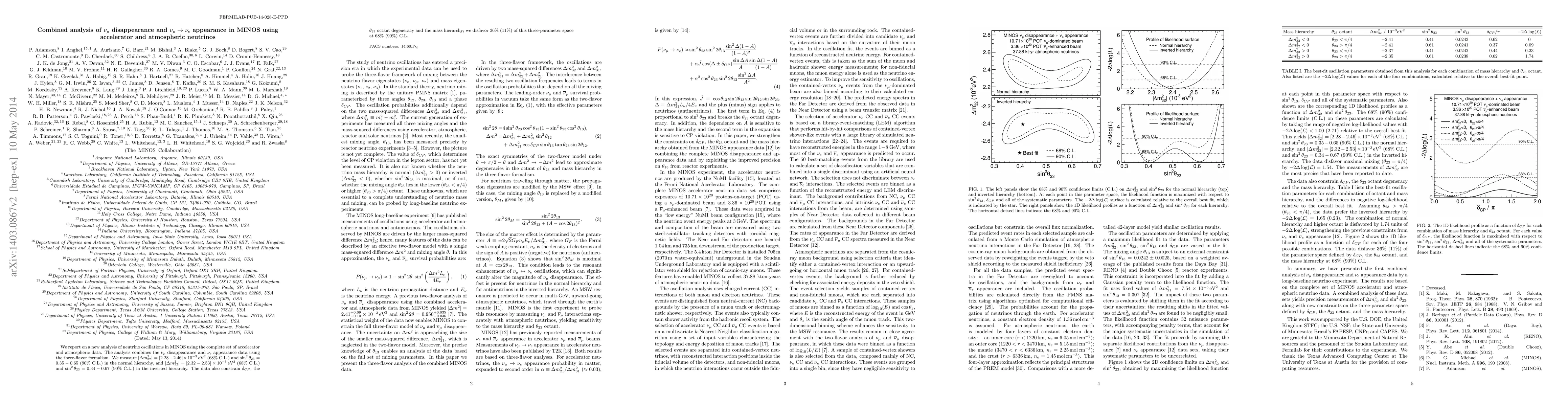 This paper presents a combined analysis of neutrino oscillations in MINOS using both accelerator and atmospheric neutrino data, measuring key oscillation parameters and constraining the mass hierarchy and CP-violating phase. The results favor both normal and inverted hierarchies with specific confidence levels.