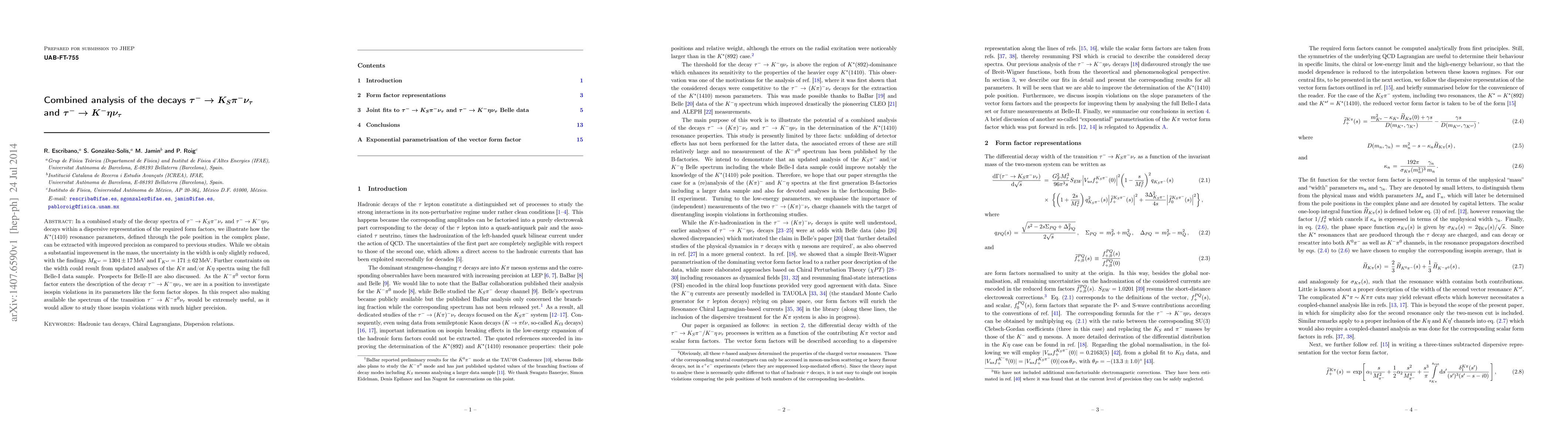 In a combined study of the decay spectra of $\tau^-\to K_S\pi^-\nu_\tau$ and $\tau^-\to K^-\eta\nu_\tau$ decays within a dispersive representation of the required form factors, we illustrate how the $K^*(1410)$ resonance parameters, defined through the pole position in the complex plane, can be extracted with improved precision as compared to previous studies. While we obtain a substantial improvement in the mass, the uncertainty in the width is only slightly reduced, with the findings $M_{K^{*\prime}}=1304 \pm 17\,$MeV and $\Gamma_{K^{*\prime}} = 171 \pm 62\,$MeV. Further constraints on the width could result from updated analyses of the $K\pi$ and/or $K\eta$ spectra using the full Belle-I data sample. Prospects for Belle-II are also discussed. As the $K^-\pi^0$ vector form factor enters the description of the decay $\tau^-\to K^-\eta\nu_\tau$, we are in a position to investigate isospin violations in its parameters like the form factor slopes. In this respect also making available the spectrum of the transition $\tau^-\to K^-\pi^0\nu_\tau$ would be extremely useful, as it would allow to study those isospin violations with much higher precision.