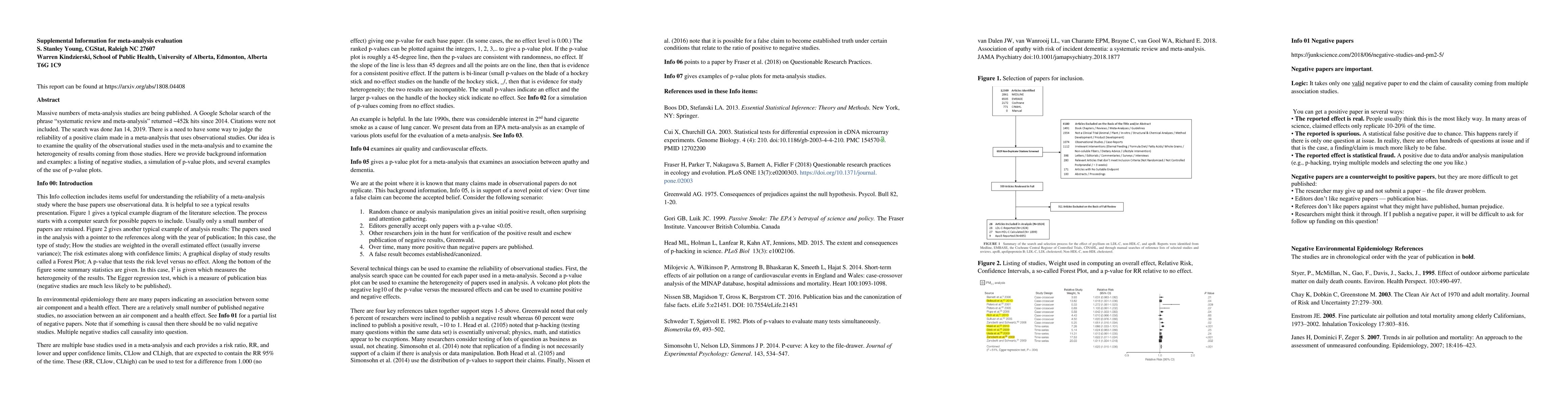 Massive numbers of meta-analysis studies are being published. A Google Scholar search of "systematic review and meta-analysis" returns about 452k hits since 2014. The search was done on Jan 14, 2019. There is a need to have some way to judge the reliability of a positive claim made in a meta-analysis that uses observational studies. Our idea is to examine the quality of the observational studies used in the meta-analysis and to examine the heterogeneity of those studies. We provide background information and examples: a listing of negative studies, a simulation of p-value plots, and multiple examples of p-value plots.