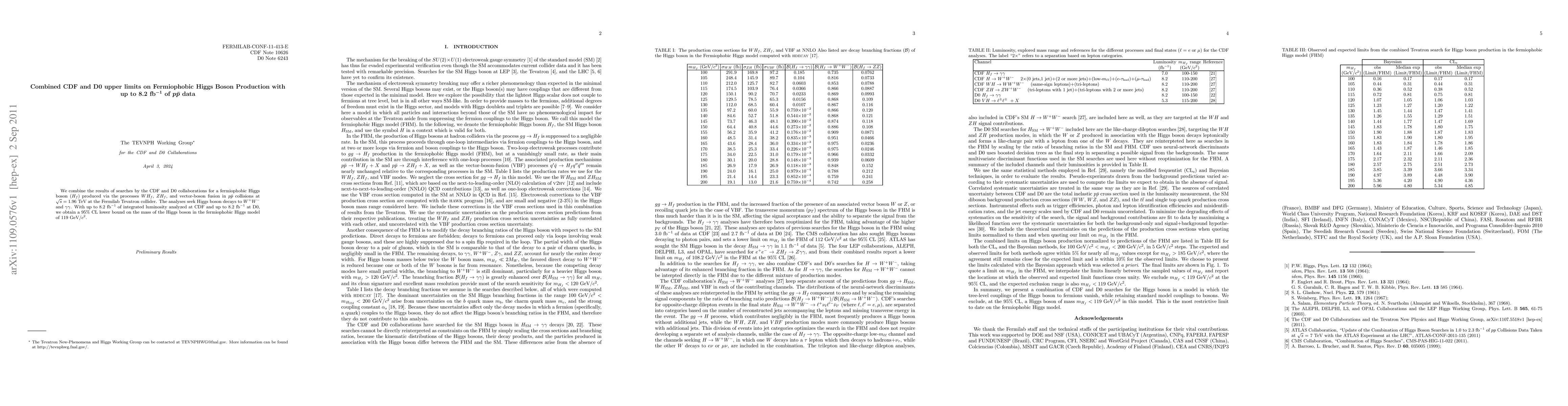 We combine the results of searches by the CDF and D0 collaborations for a fermiophobic Higgs boson (H_f) produced via the processes WH_f, ZH_f, and vector-boson fusion in ppbar collisions at sqrt(s)=1.96 TeV at the Fermilab Tevatron collider. The analyses seek Higgs boson decays to W^+W^- and gamma gamma. With up to 8.2 fb-1 of integrated luminosity analyzed at CDF and up to 8.2 fb-1 at D0, we obtain a 95% CL lower bound on the mass of the Higgs boson in the fermiophobic Higgs model of 119 GeV/c^2.