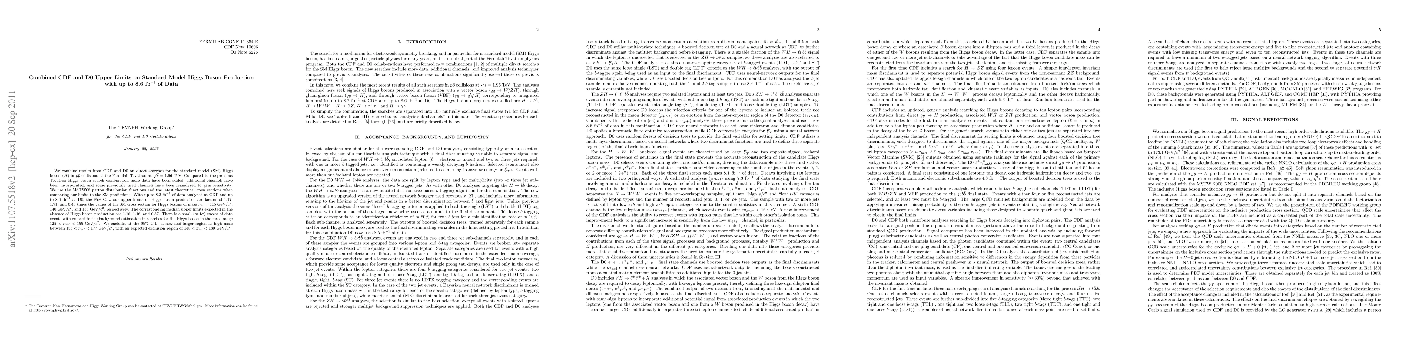 With up to 8.2 fb-1 of data analyzed at CDF and up to 8.6 fb-1 at D0, the 95%