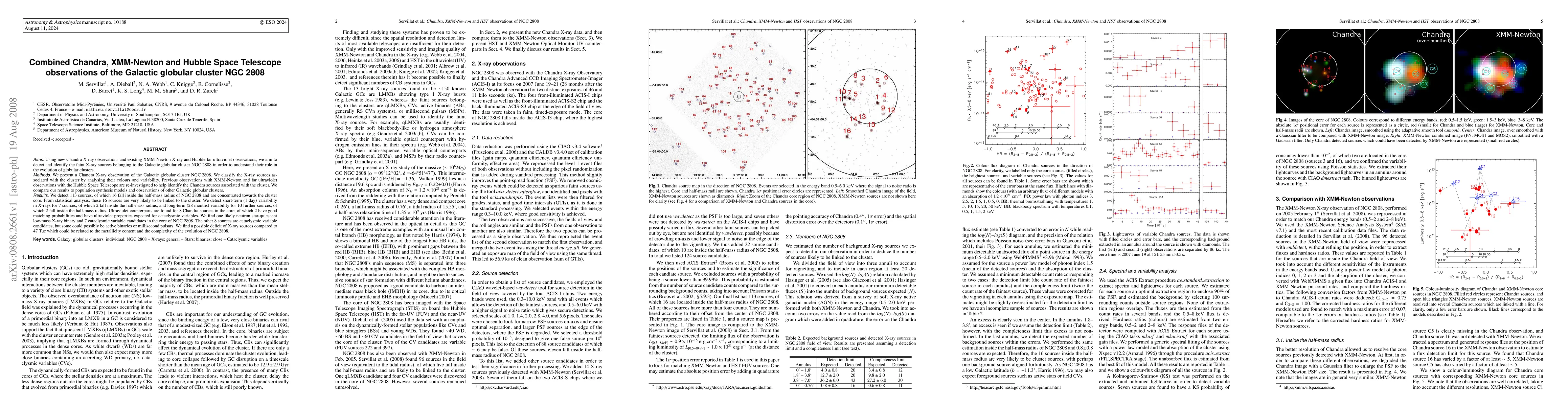 This study combines Chandra, XMM-Newton, and Hubble observations to identify and classify X-ray sources in the globular cluster NGC 2808, detecting 113 sources with 16 likely cluster members, including 7 cataclysmic variable candidates and 1 neutron star-quiescent low-mass X-ray binary, suggesting a possible evolution complexity linked to metallicity.