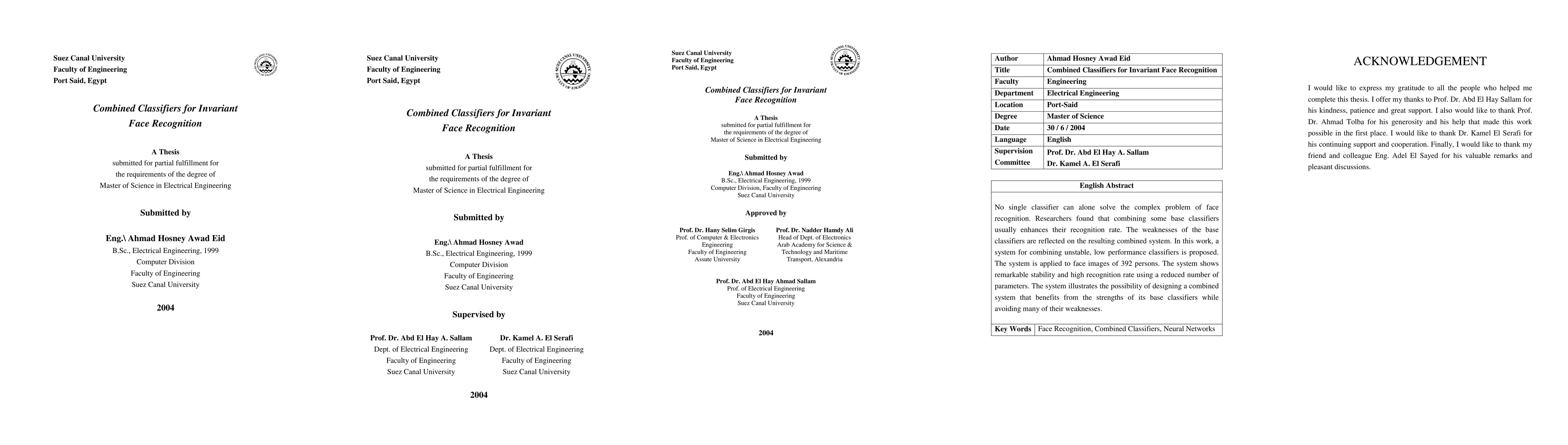 This paper proposes a system combining multiple low-performance classifiers to enhance face recognition accuracy, demonstrating stability and high recognition rates with fewer parameters. The combined system leverages the strengths of individual classifiers while mitigating their weaknesses.