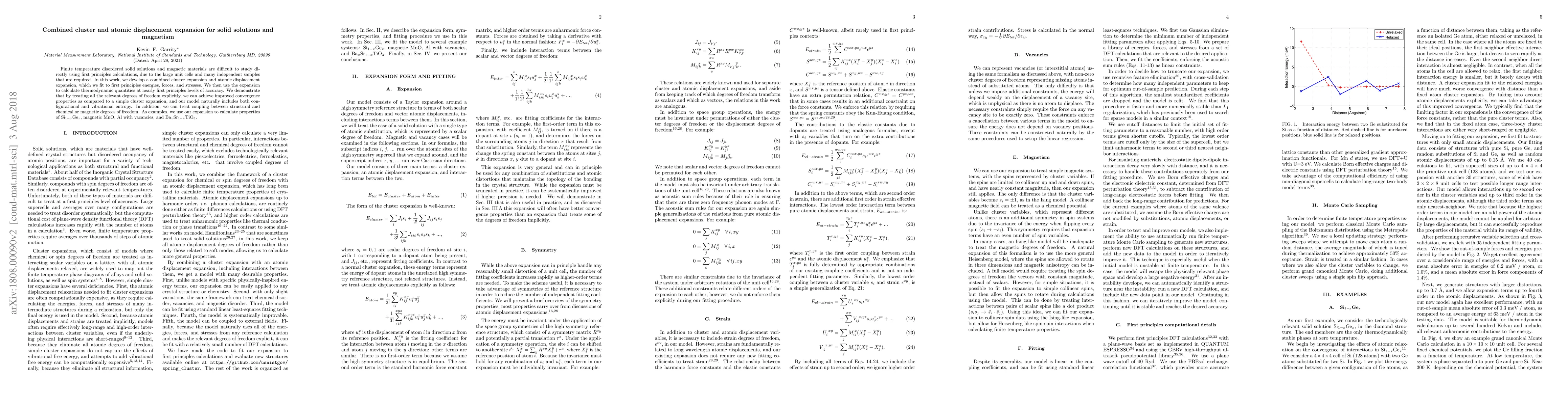 Finite temperature disordered solid solutions and magnetic materials are difficult to study directly using first principles calculations, due to the large unit cells and many independent samples that are required. In this work, we develop a combined cluster expansion and atomic displacement expansion, which we fit to first principles energies, forces, and stresses. We then use the expansion to calculate thermodynamic quantities at nearly first principles levels of accuracy. We demonstrate that by treating all the relevant degrees of freedom explicitly, we can achieve improved convergence properties as compared to a simple cluster expansion, and our model naturally includes both configurational and vibrational entropy. In addition, we can treat coupling between structural and chemical or magnetic degrees of freedom. As examples, we use our expansion to calculate properties of Si$_{1-x}$Ge$_x$, magnetic MnO, Al with vacancies, and Ba$_x$Sr$_{1-x}$TiO$_3$.