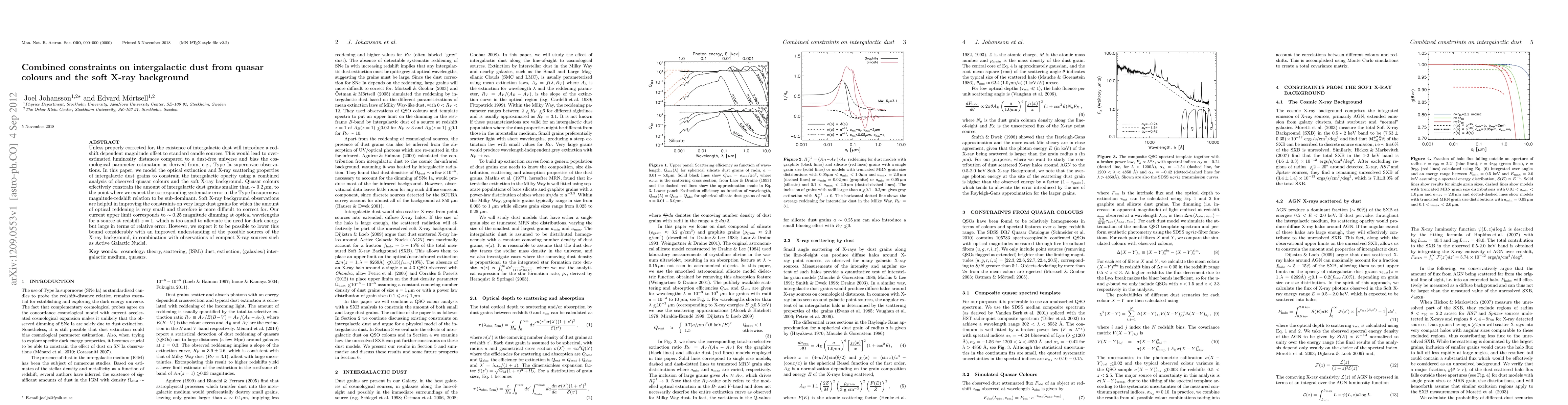 This paper combines quasar colour observations and soft X-ray background data to model intergalactic dust's optical extinction and X-ray scattering, aiming to constrain its opacity. The findings suggest that the dust's impact on Type Ia supernovae observations is minimal but highlight the potential for further reductions in dust-related errors with improved X-ray source understanding.