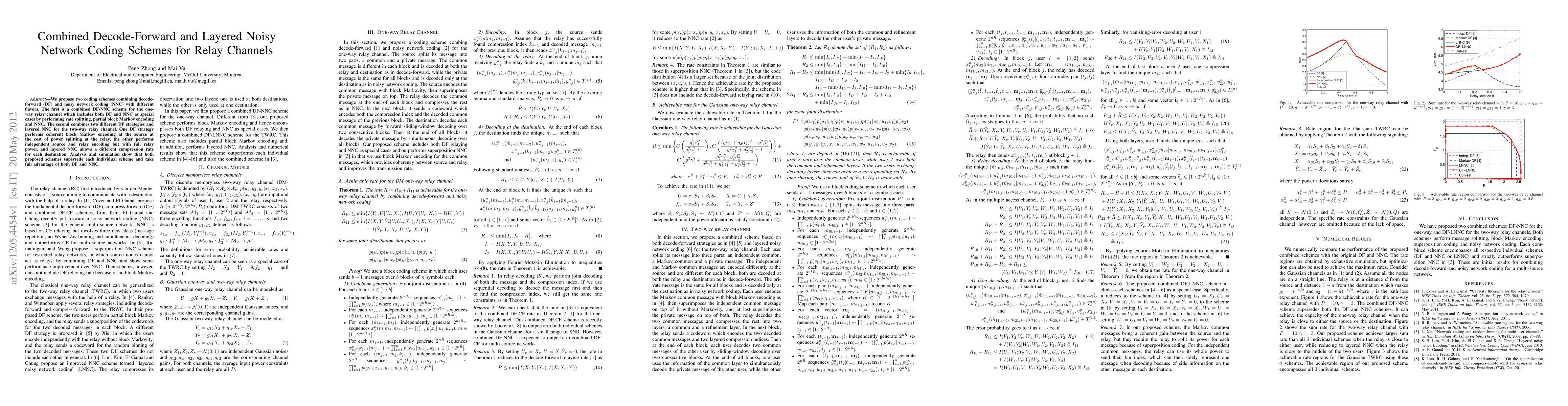 This paper proposes two coding schemes that combine decode-forward and noisy network coding for relay channels. The first scheme for the one-way relay channel uses rate splitting and layered NNC, while the second for the two-way channel employs two DF strategies and layered NNC, achieving better performance than individual schemes.