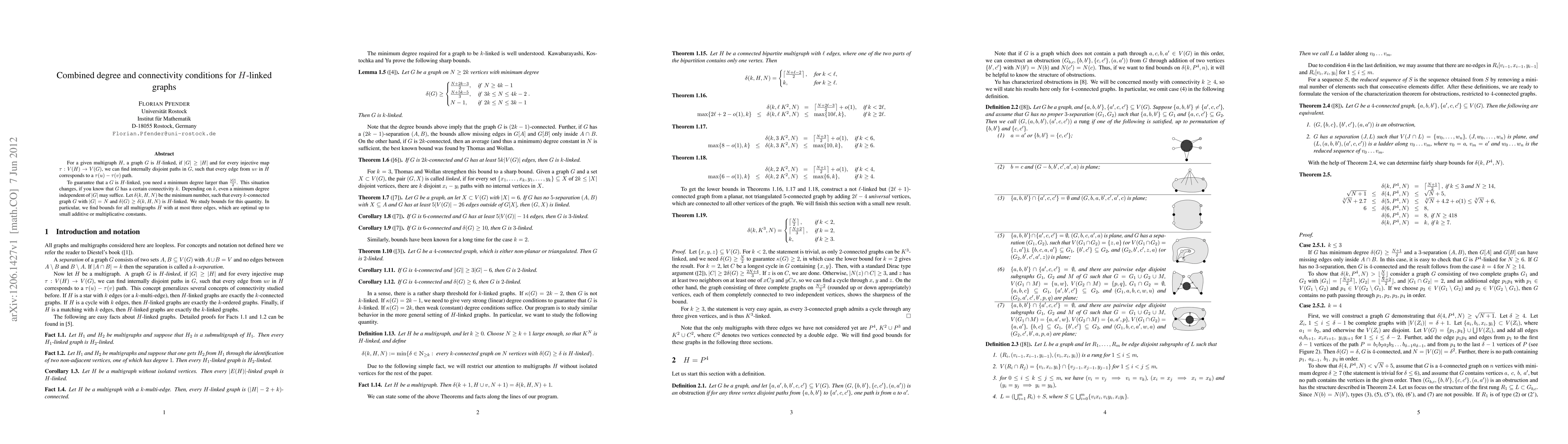 For a given multigraph H, a graph G is H-linked, if |G| \geq |H| and for every injective map {\tau}: V (H) \rightarrow V (G), we can find internally disjoint paths in G, such that every edge from uv in H corresponds to a {\tau} (u) - {\tau} (v) path. To guarantee that a G is H-linked, you need a minimum degree larger than |G|/2. This situation changes, if you know that G has a certain connectivity k. Depending on k, even a minimum degree independent of |G| may suffice. Let {\delta}(k, H, N) be the minimum number, such that every k-connected graph G with |G| = N and {\delta}(G) \geq {\delta}(k, H, N) is H-linked. We study bounds for this quantity. In particular, we find bounds for all multigraphs H with at most three edges, which are optimal up to small additive or multiplicative constants.