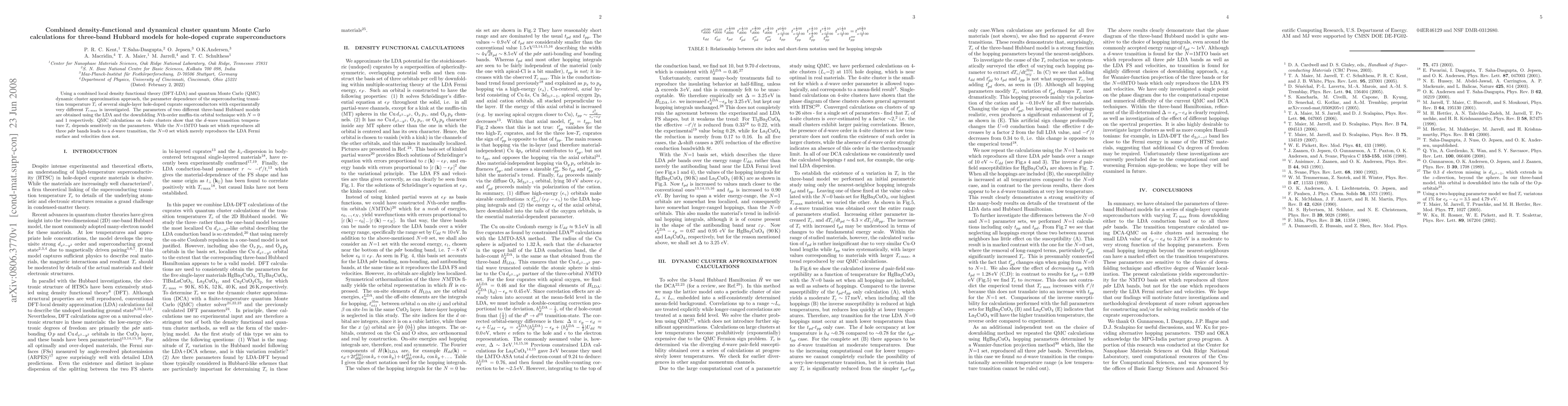 This paper combines local density functional theory and quantum Monte Carlo methods to study the superconducting transition temperature Tc in hole-doped cuprate superconductors. The research finds that the d-wave transition temperature Tc is sensitive to the parameters derived from different three-band Hubbard models, with the N=1 MTO basis set leading to a d-wave transition.