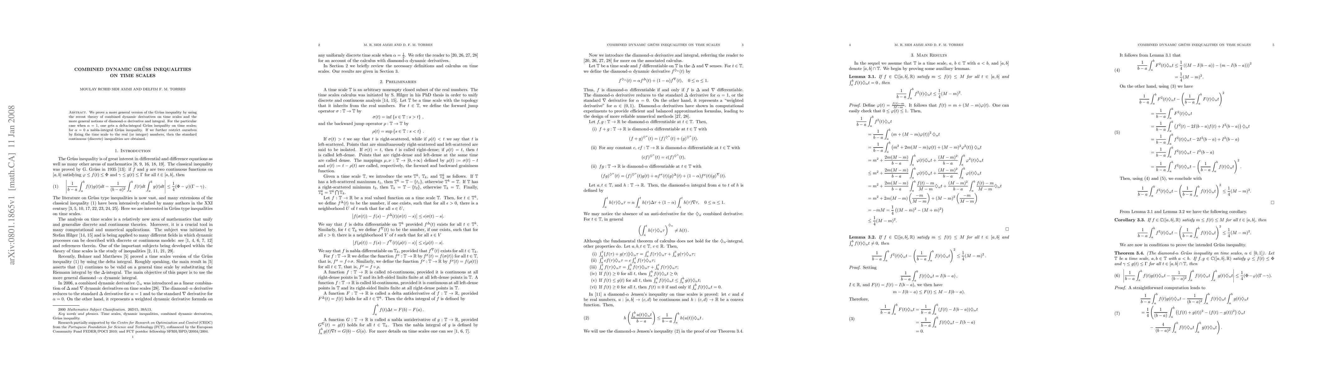Researchers extend Gruss inequality to time scales using combined dynamic derivatives, proving a general version with applications to delta-integral and nabla-integral inequalities.