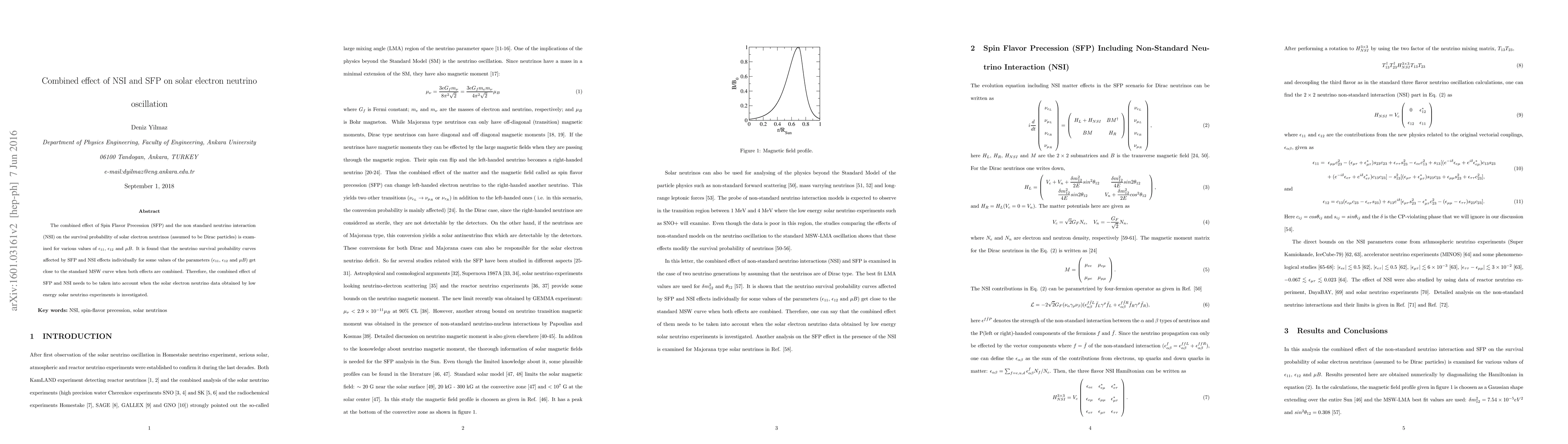 The combined effect of SFP and the non standard neutrino interaction (NSI) on the survival probability of solar electron neutrinos (assumed to be Dirac particles) is examined for various values of $\epsilon_{11}$, $\epsilon_{12}$ and $\mu B$. It is found that the neutrino survival probability curves affected by SFP and NSI effects individually for some values of the parameters ($\epsilon_{11}$, $\epsilon_{12}$ and $\mu B$) get close to the standard MSW curve when both effects are combined. Therefore, the combined effect of SFP and NSI needs to be taken into account when the solar electron neutrino data obtained by low energy solar neutrino experiments is investigated.