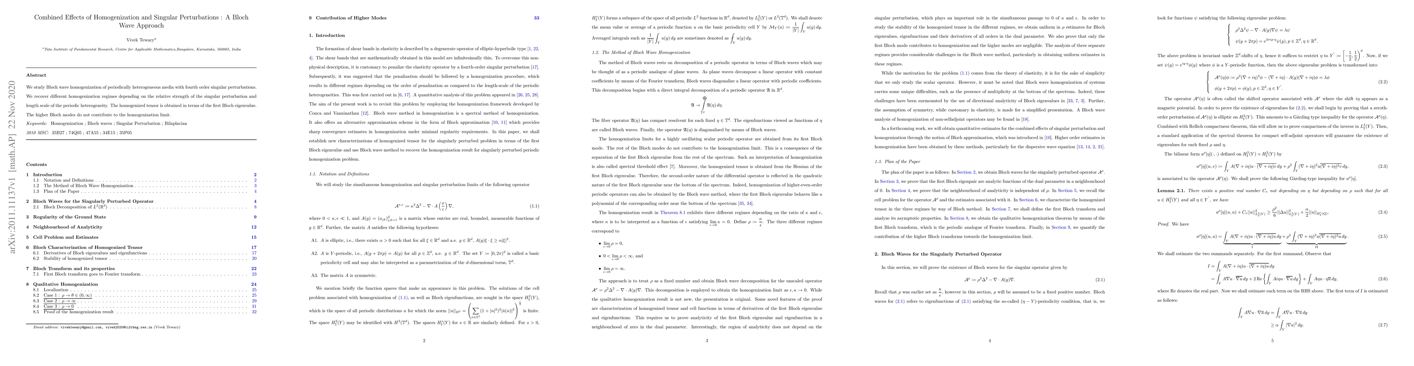 We study Bloch wave homogenization of periodically heterogeneous media with fourth order singular perturbations. We recover different homogenization regimes depending on the relative strength of the singular perturbation and length scale of the periodic heterogeneity. The homogenized tensor is obtained in terms of the first Bloch eigenvalue. The higher Bloch modes do not contribute to the homogenization limit.