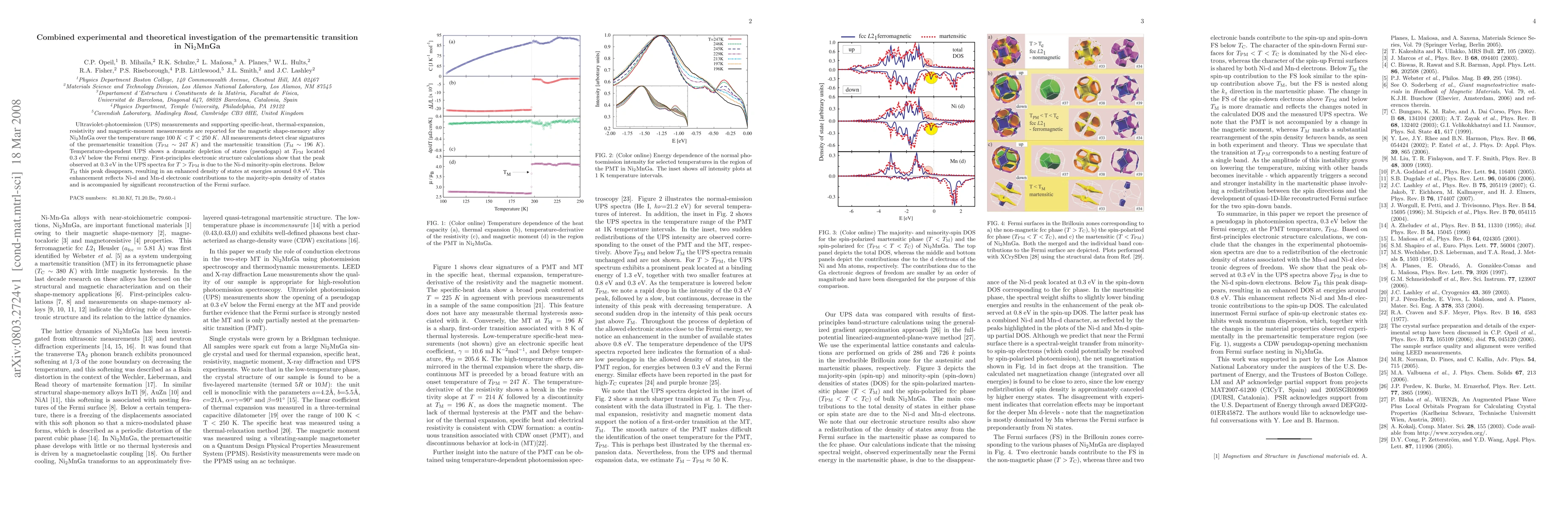 Ultraviolet-photoemission (UPS) measurements and supporting specific-heat, thermal-expansion, resistivity and magnetic-moment measurements are reported for the magnetic shape-memory alloy Ni$_2$MnGa over the temperature range $100K < T < 250K$. All measurements detect clear signatures of the premartensitic transition ($T_\mathrm{PM}\sim 247K$) and the martensitic transition ($T_\mathrm{M} \sim 196K$). Temperature-dependent UPS shows a dramatic depletion of states (pseudogap) at $T_\mathrm{PM}$ located 0.3eV below the Fermi energy. First-principles electronic structure calculations show that the peak observed at 0.3eV in the UPS spectra for $T > T_\mathrm{PM}$ is due to the Ni-d minority-spin electrons. Below $T_\mathrm{M}$ this peak disappears, resulting in an enhanced density of states at energies around 0.8eV. This enhancement reflects Ni-d and Mn-d electronic contributions to the majority-spin density of states and is accompanied by significant reconstruction of the Fermi surface.