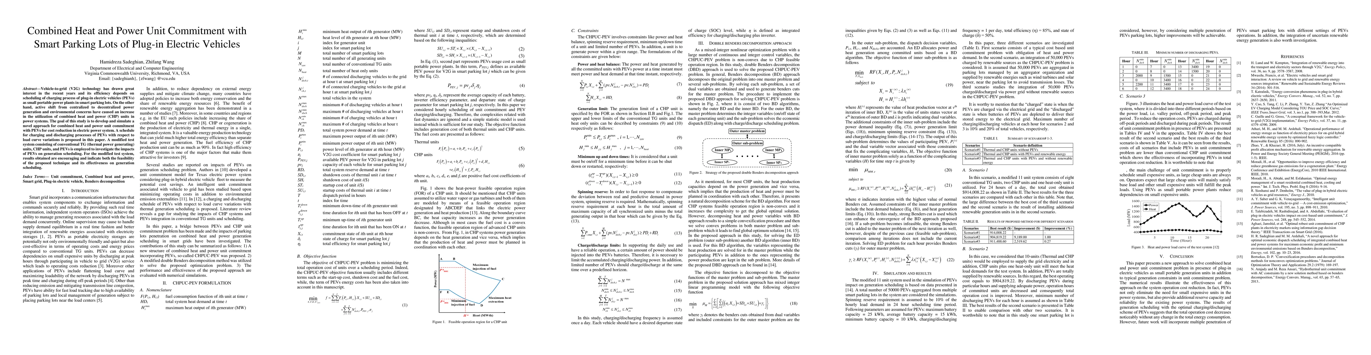 Vehicle-to-grid (V2G) technology has drawn great interest in the recent years and its efficiency depends on scheduling of charging process of plug-in electric vehicles (PEVs) as small portable power plants in smart parking lots. On the other hand, active shift from centralized to decentralized power generation and environmental concerns have caused an increase in the utilization of combined heat and power (CHP) units in power systems. The goal of this study is to develop and simulate a novel approach for combined heat and power unit commitment with PEVs for cost reduction in electric power system. A schedule for charging and discharging processes of PEVs with respect to load curve variations is proposed in this paper. A modified test system consisting of conventional TG (thermal power generating) units, CHP units, and PEVs is employed to investigate the impacts of PEVs on generation scheduling. For the modified test system, results obtained are encouraging and indicate both the feasibility of the proposed technique and its effectiveness on generation scheduling.