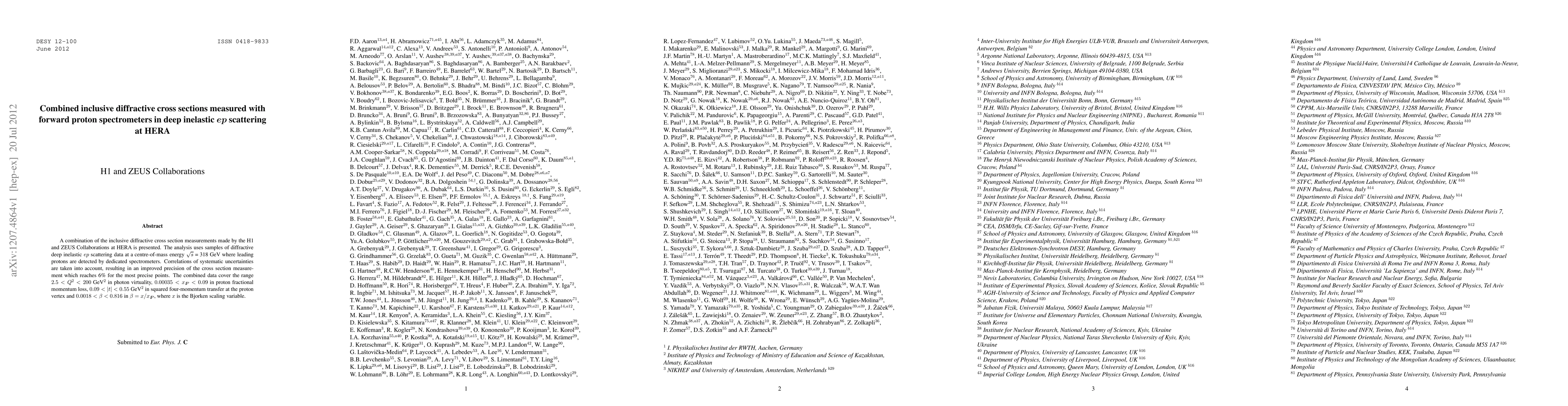 This paper combines inclusive diffractive cross section measurements from the H1 and ZEUS Collaborations at HERA, improving precision to 6% through systematic uncertainty correlations. The data cover a range of Q2, xIP, |t|, and beta variables in deep inelastic ep scattering.
