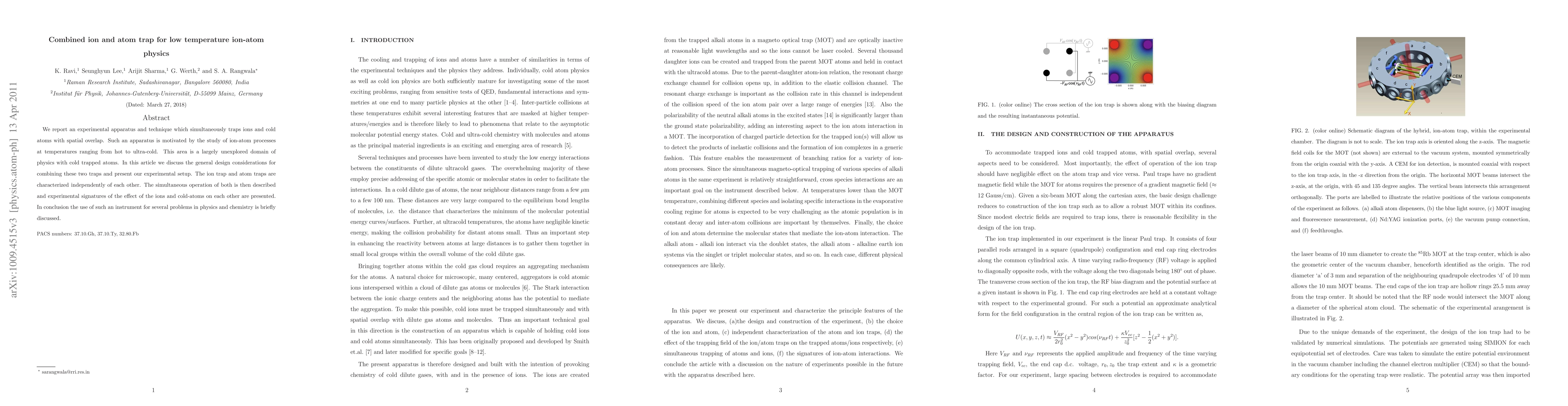 This paper describes an experimental setup combining ion and atom traps to study ion-atom interactions across a wide temperature range. The apparatus allows for independent characterization of both traps and presents the simultaneous operation, highlighting potential applications in low-temperature physics and chemistry.