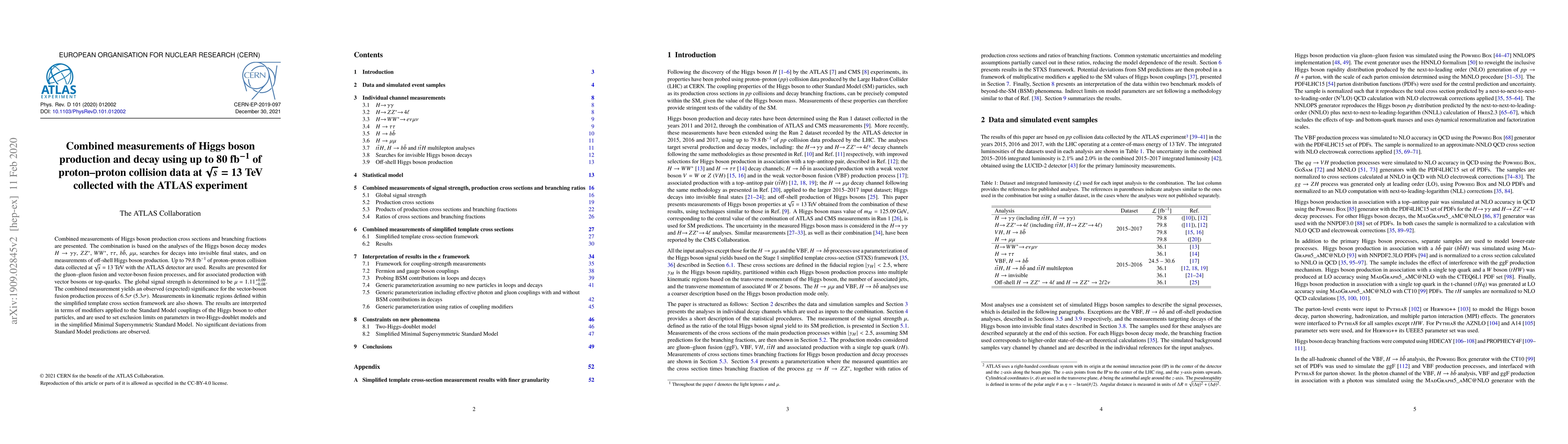 This paper combines measurements of Higgs boson production and decay using 79.8 fb$^{-1}$ of proton-proton collision data at 13 TeV from the ATLAS experiment. The analysis includes various decay modes and production processes, yielding a global signal strength of $\mu = 1.11^{+0.09}_{-0.08}$ and a $6.5\sigma$ significance for vector-boson fusion production, with no significant deviations from Standard Model predictions.
