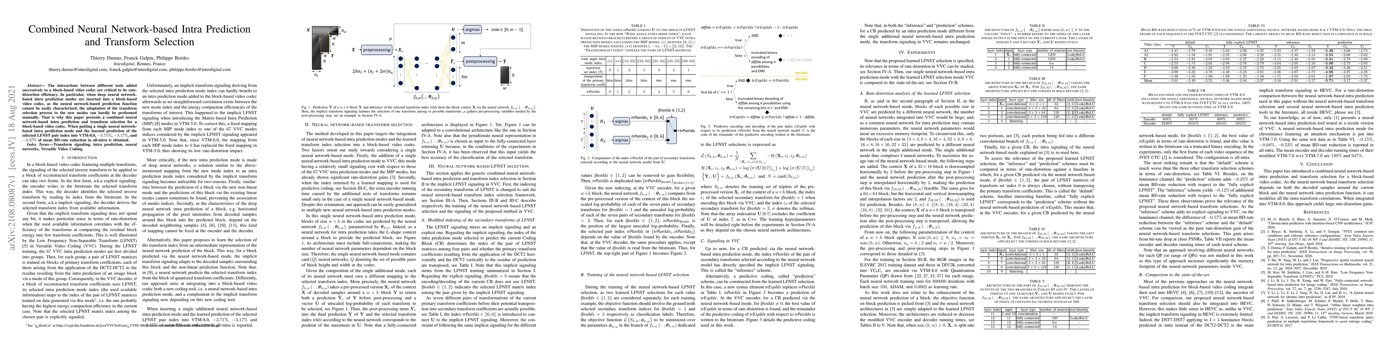 A novel neural network-based transform selection approach is introduced, which models all intra-transform correlations