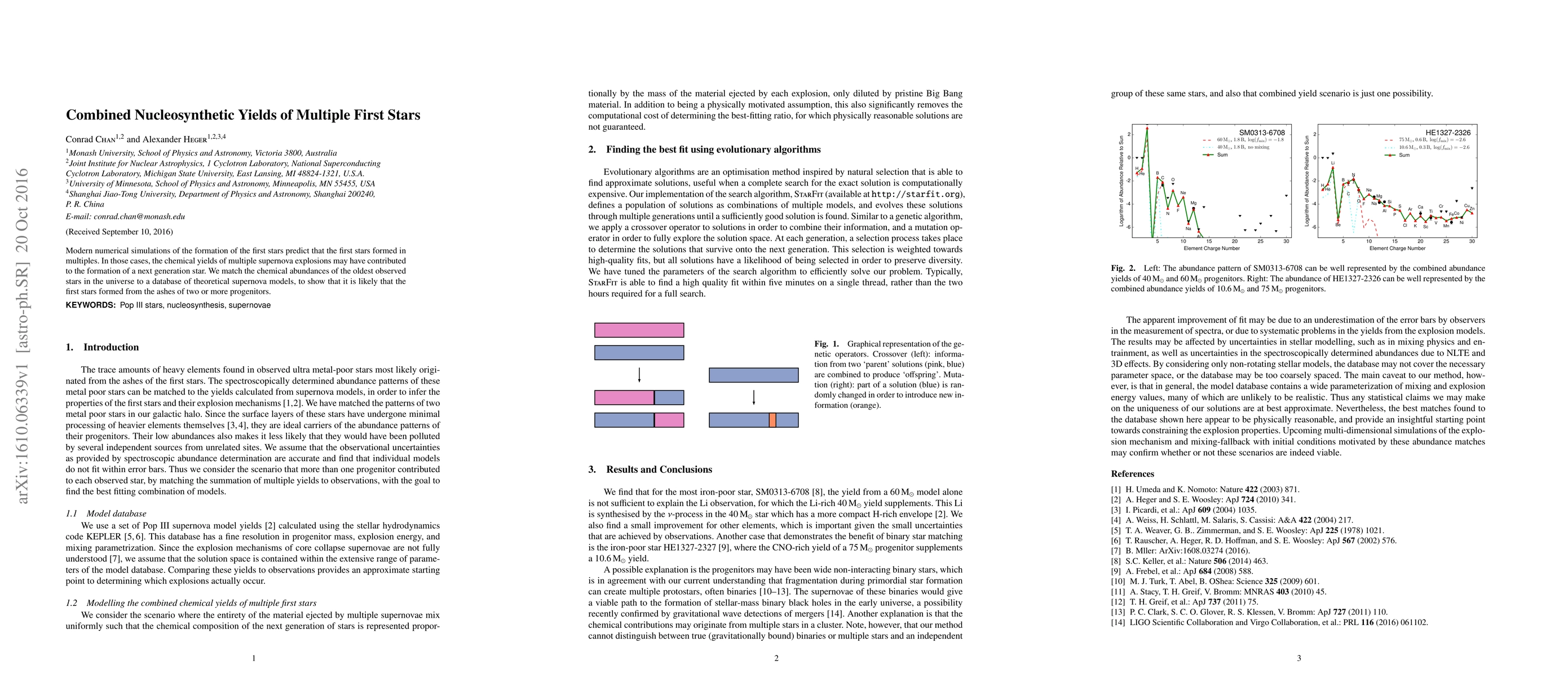 The research matches observed chemical abundances in ancient stars to theoretical supernova models, suggesting that first-generation stars likely formed from multiple progenitors, supported by simulations predicting multiple first star formations.