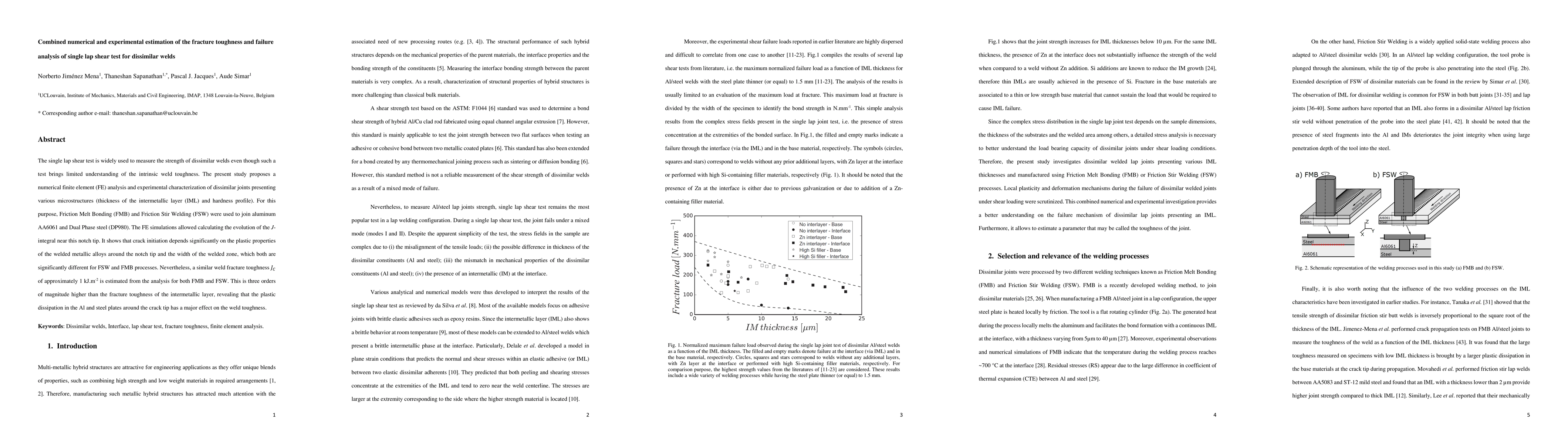 This study combines numerical finite element analysis and experimental testing to evaluate the fracture toughness and failure mechanisms of dissimilar welds in single lap shear tests. Both Friction Melt Bonding and Friction Stir Welding methods were used to join aluminum and steel, revealing that while the processes differ, the estimated weld fracture toughness remains consistent at around 1 kJ.m-2, highlighting the significant role of plastic dissipation in the base materials.