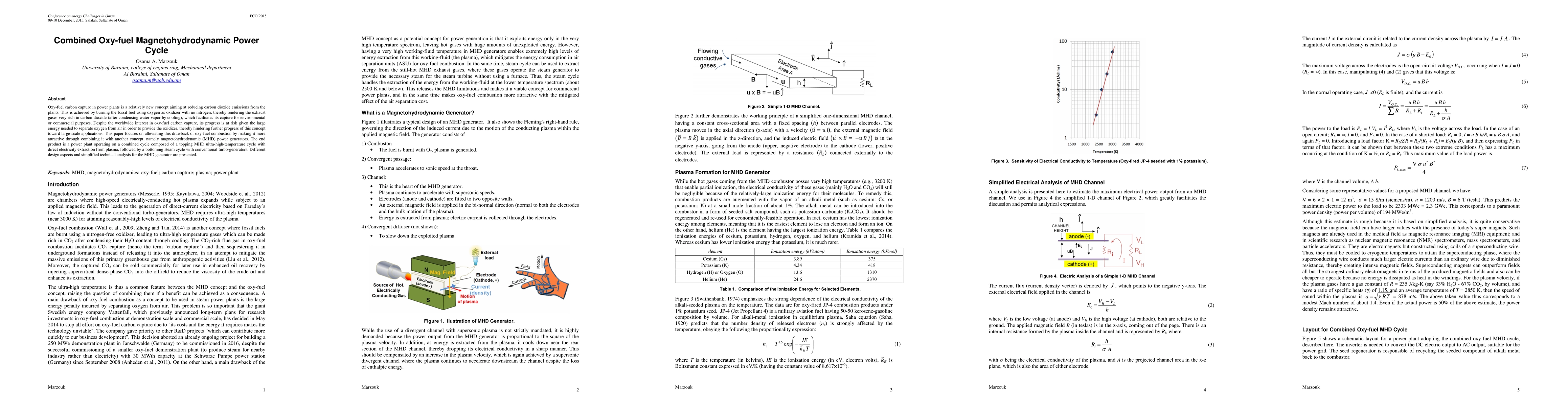 This paper explores a combined oxy-fuel magnetohydrodynamic (MHD) power cycle to enhance oxy-fuel carbon capture by integrating MHD generators, which aim to reduce the energy penalty for oxygen separation and improve overall efficiency for large-scale carbon capture applications. The proposed system includes a topping MHD cycle and a bottoming steam cycle.
