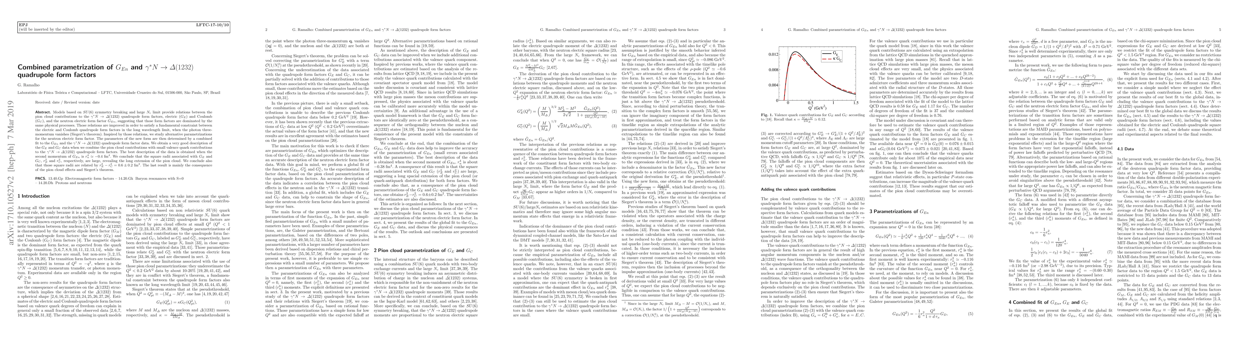 This paper explores the relationship between neutron electric form factor $G_{En}$ and the $\gamma^\ast N \to \Delta(1232)$ quadrupole form factors, suggesting they are dominated by the same physical processes. A new parametrization for $G_{En}$ is developed and fitted to data, revealing large square radii for $G_E$ and $G_C$ and a relationship $r_E^2 - r_C^2 = 0.6 \pm 0.2$ fm$^2$, highlighting the influence of pion cloud effects.